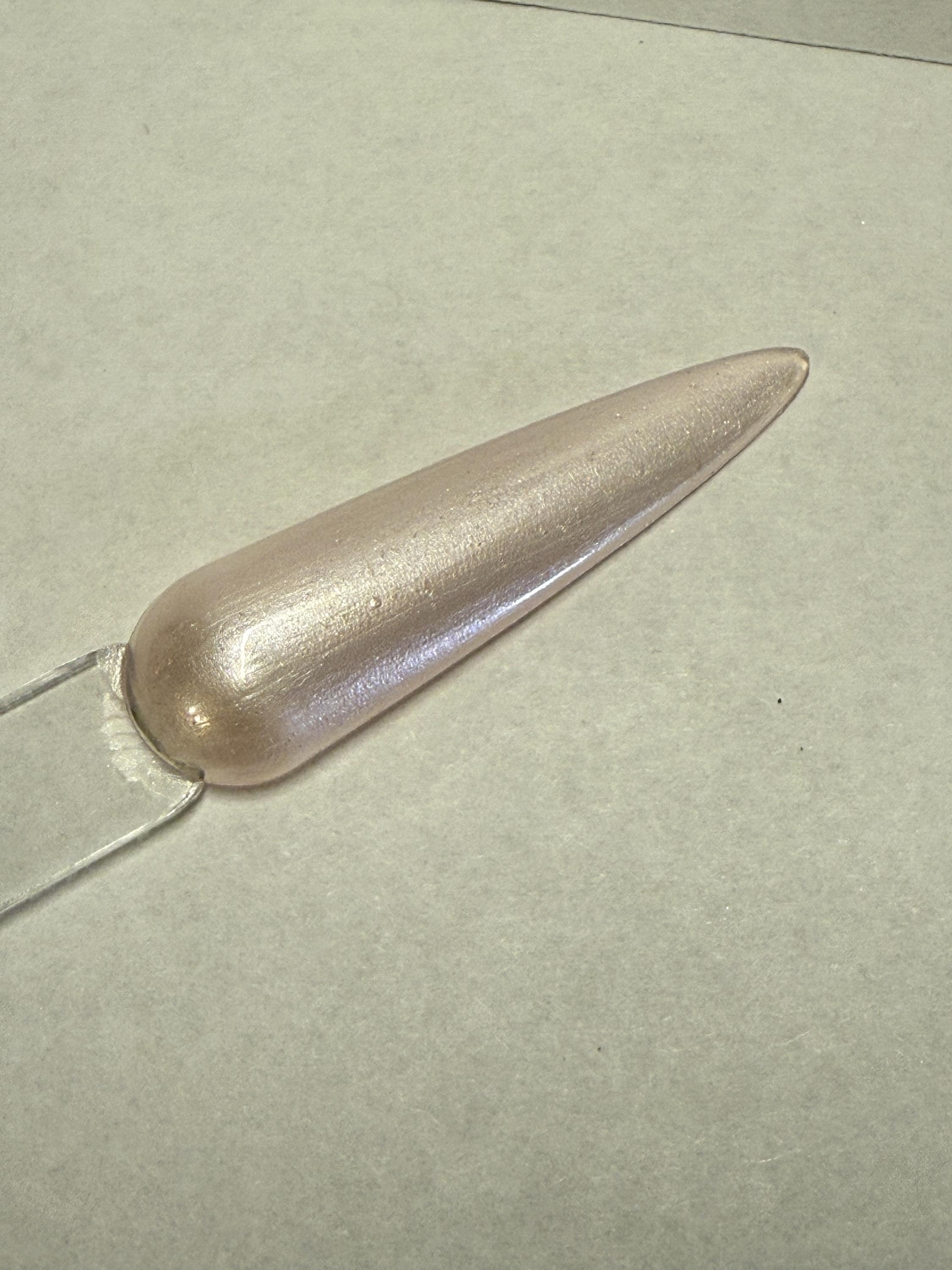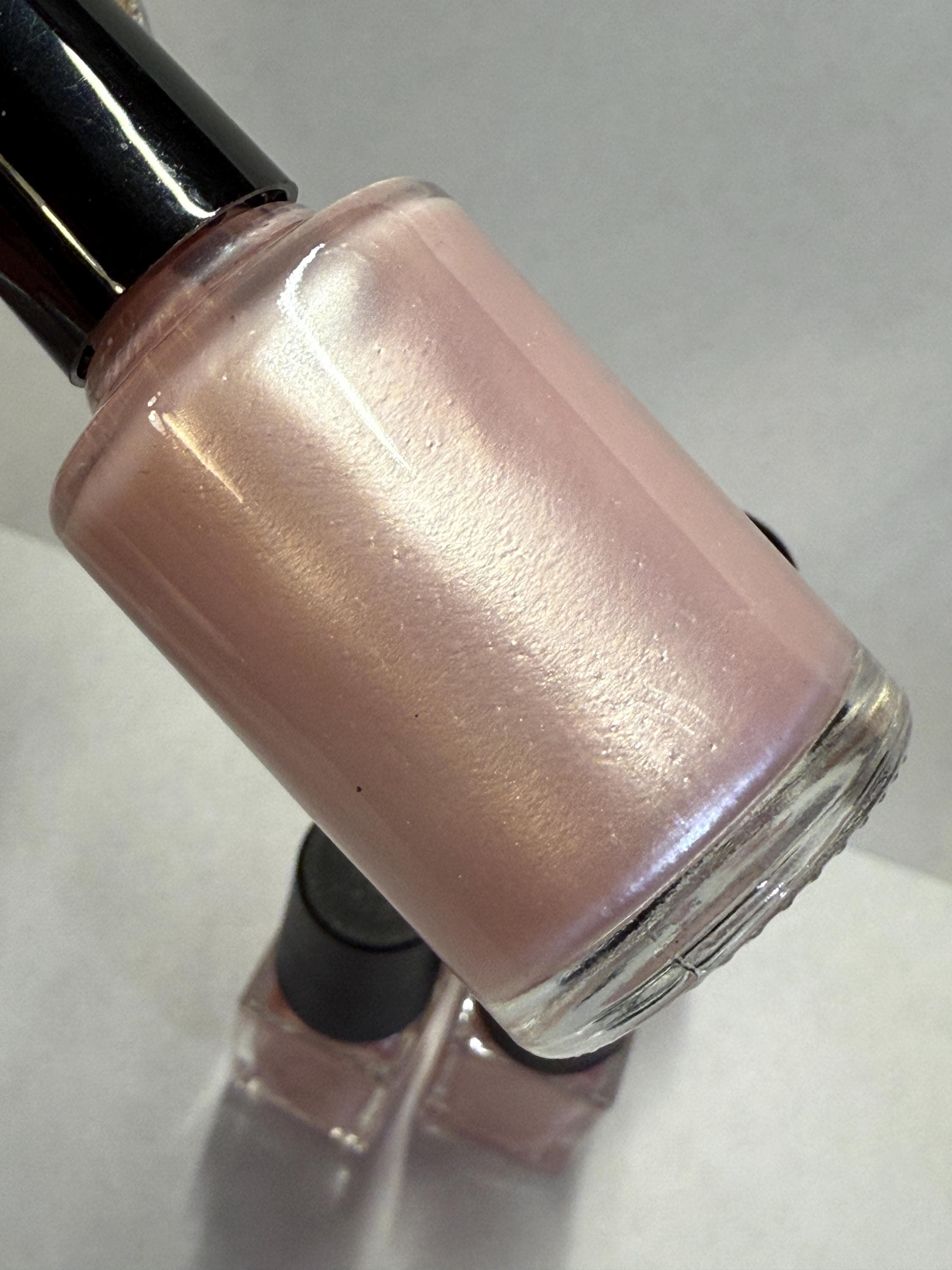 This nail polish comes in either 5 or 15ml bottles and is a very frosty shimmery pink with a barely-there silver holo shimmer to it as well.
