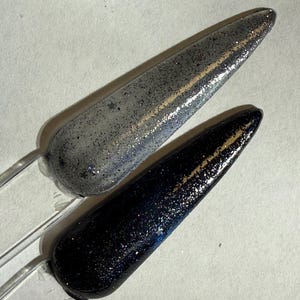 The photos/videos is one coat of Hoots over a black base and magnetized using the bead method, and the other is two coats of Hoots velvetized.