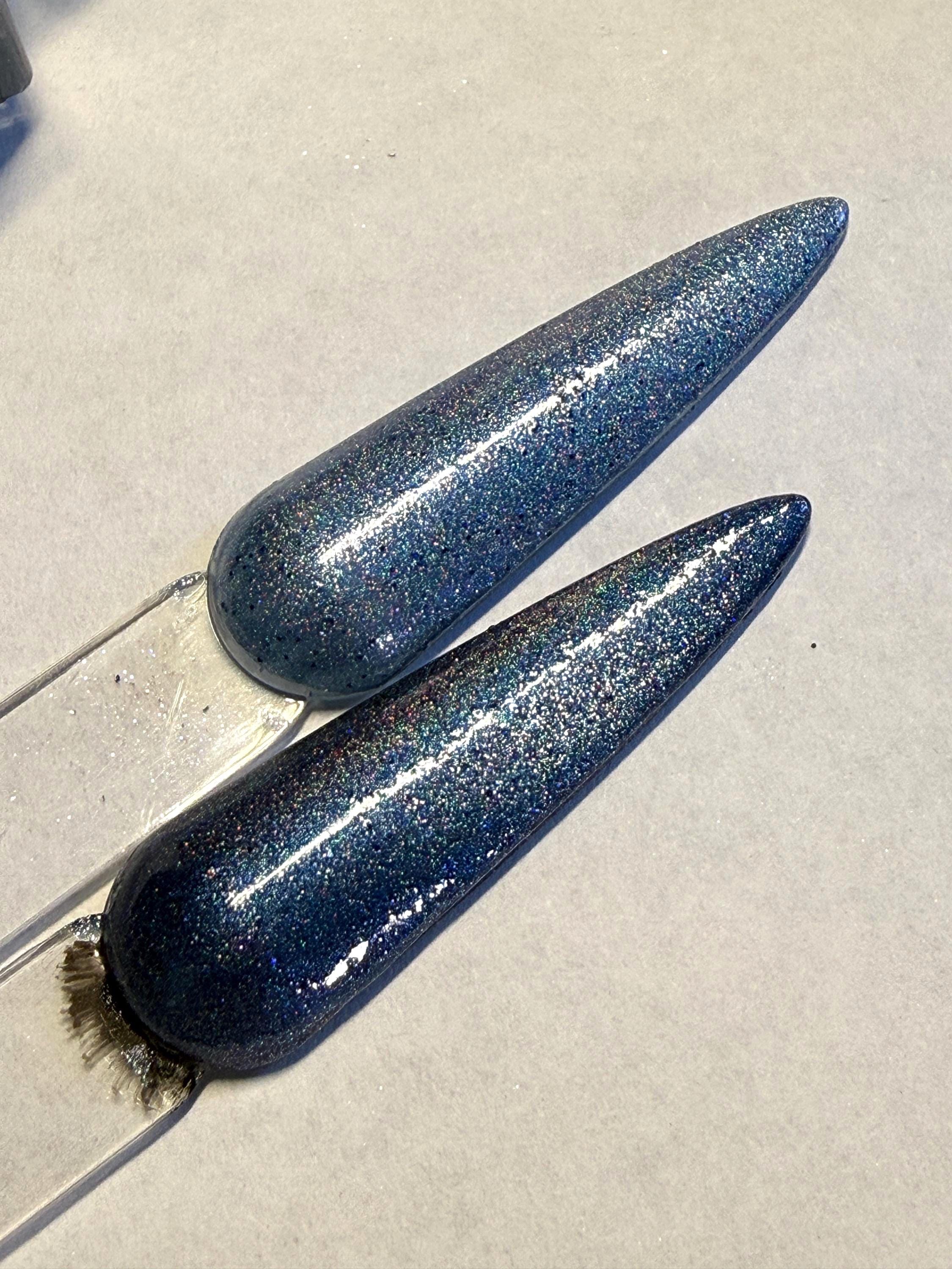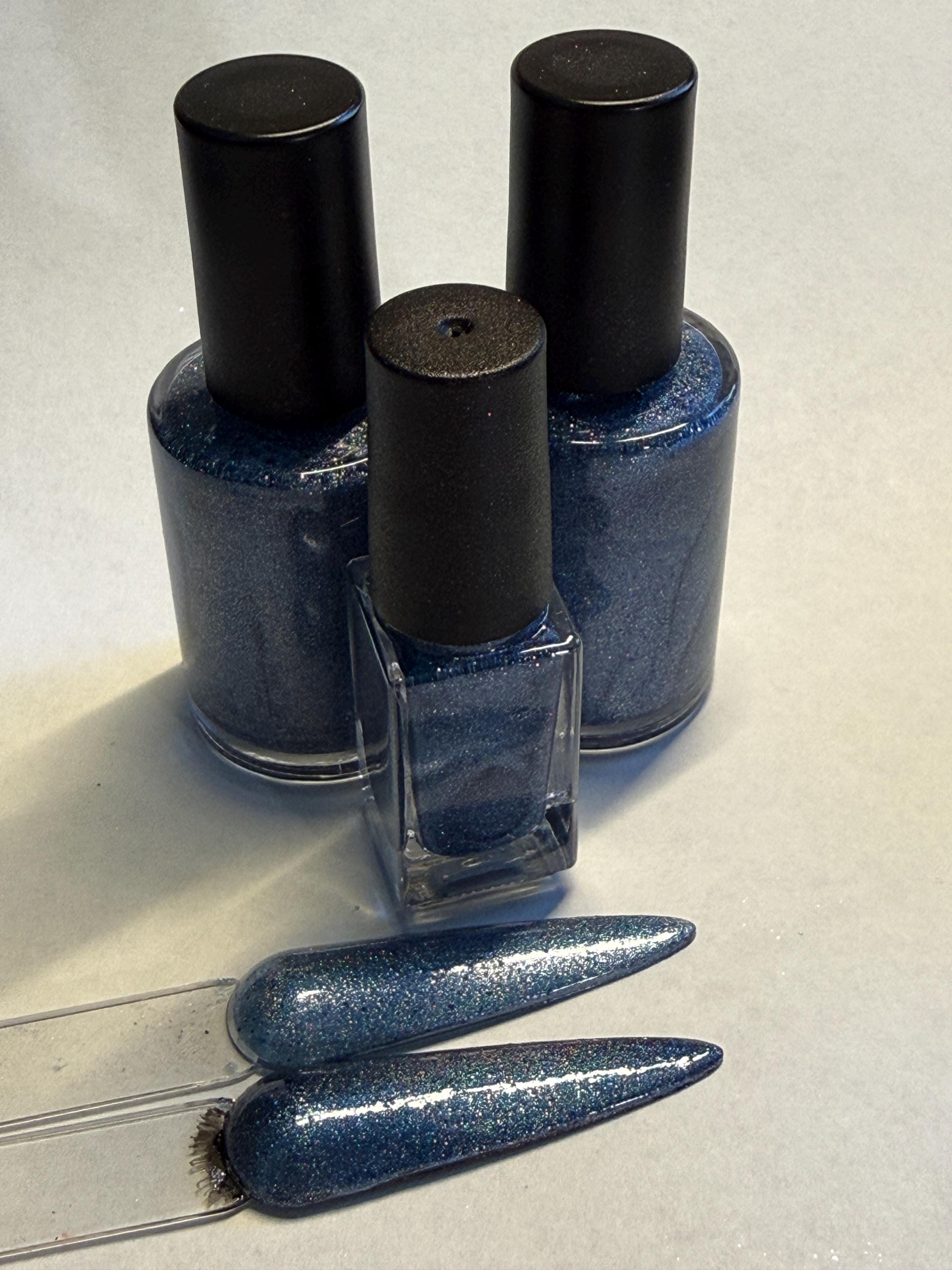 This nail polish comes in either 5 or 15ml bottles and is a blue holographic magnetic. You will need a magnet to take advantage of the magnetic properties within. It does not come with a magnet but if you'd like me to include one for $1, please check my other listings.