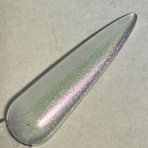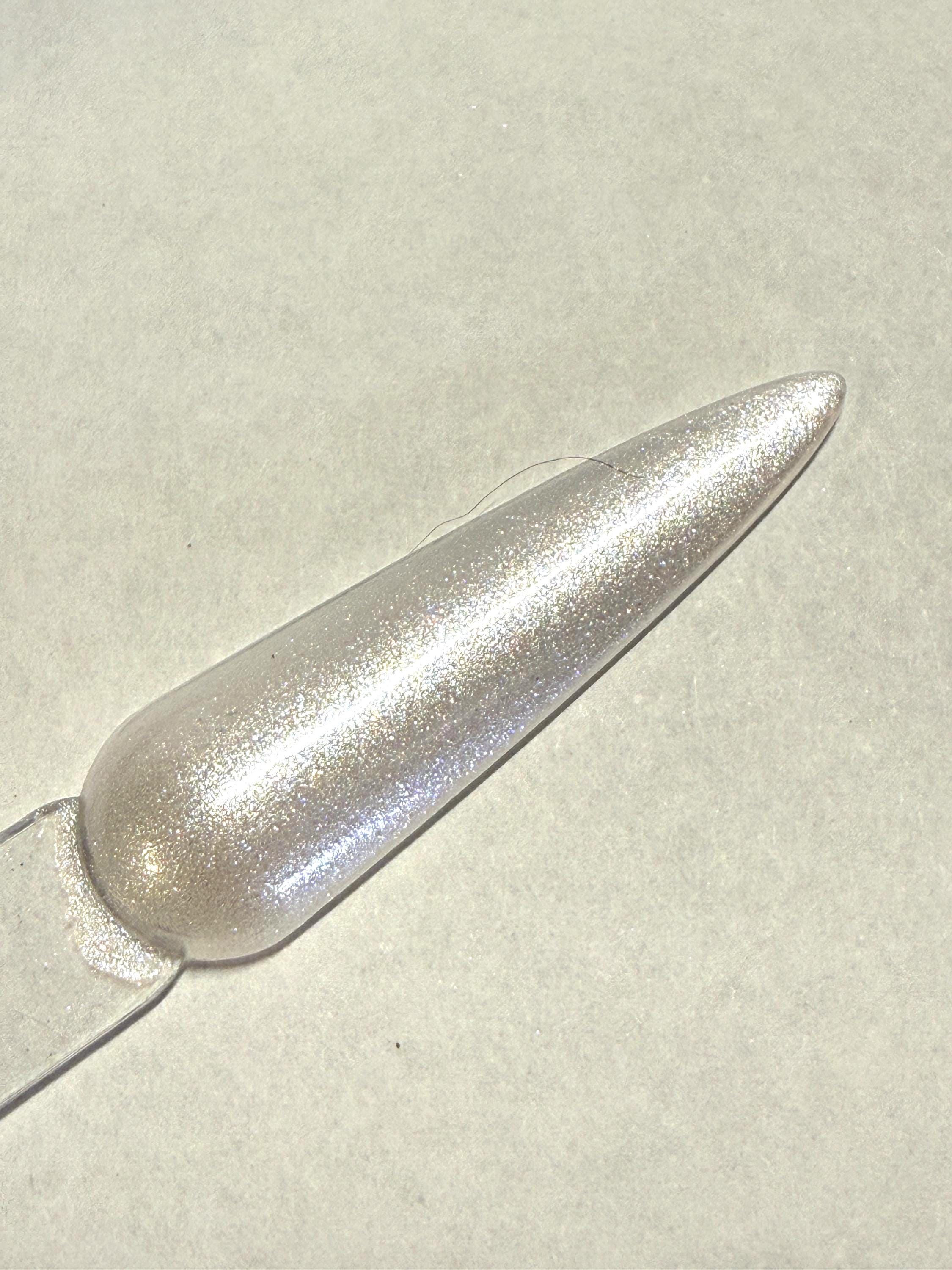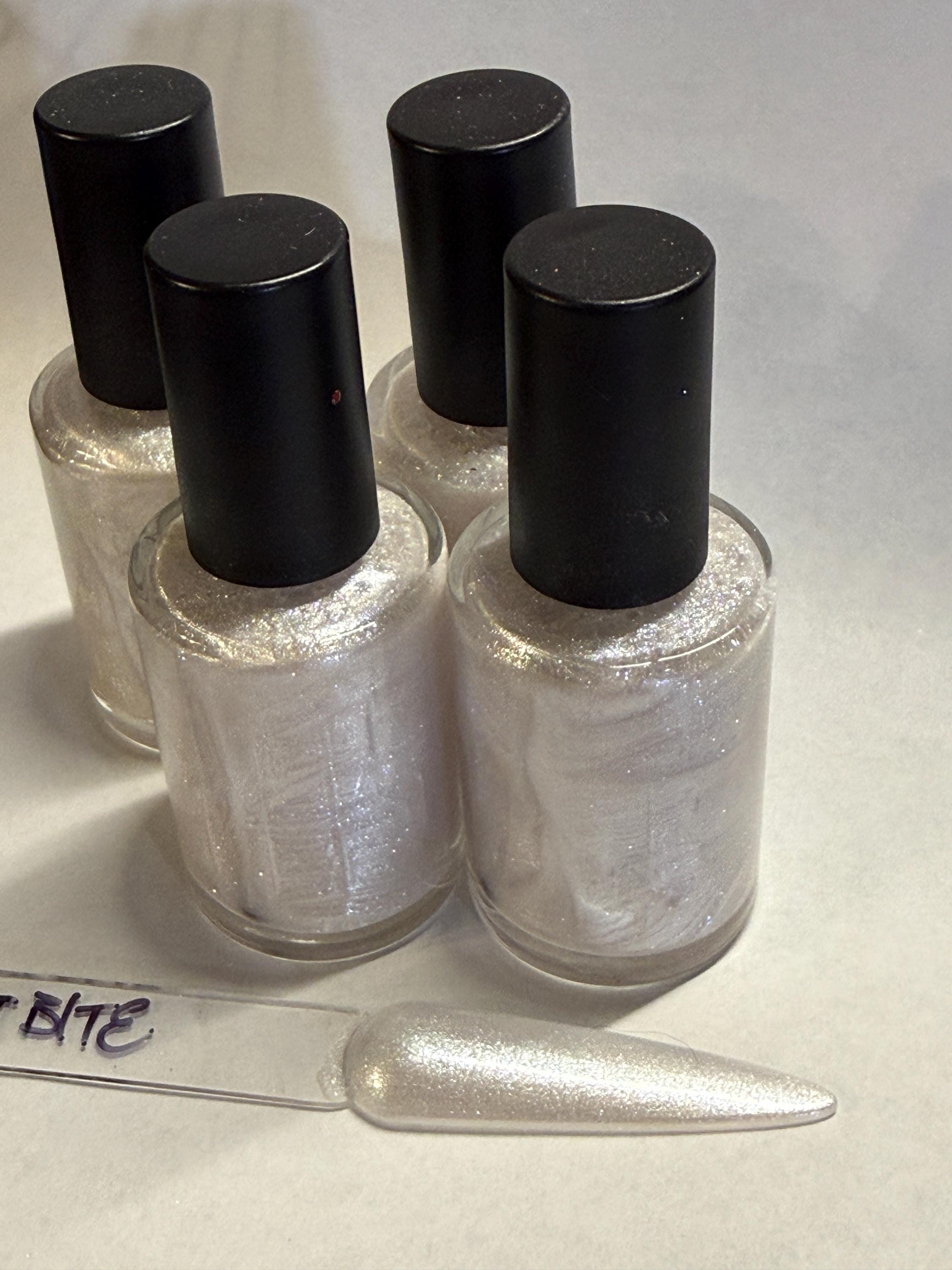 This nail polish comes in either 5 or 15ml bottles and is a white shimmer.