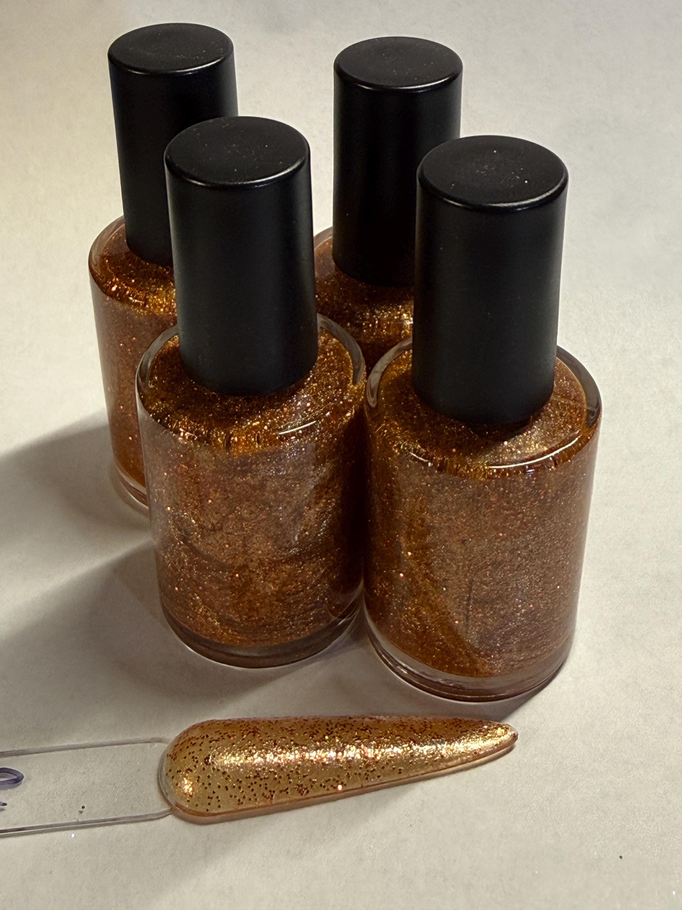 This nail polish comes in either 5 or 15ml bottles and is a dark gold holographic with fine dark gold glitter.