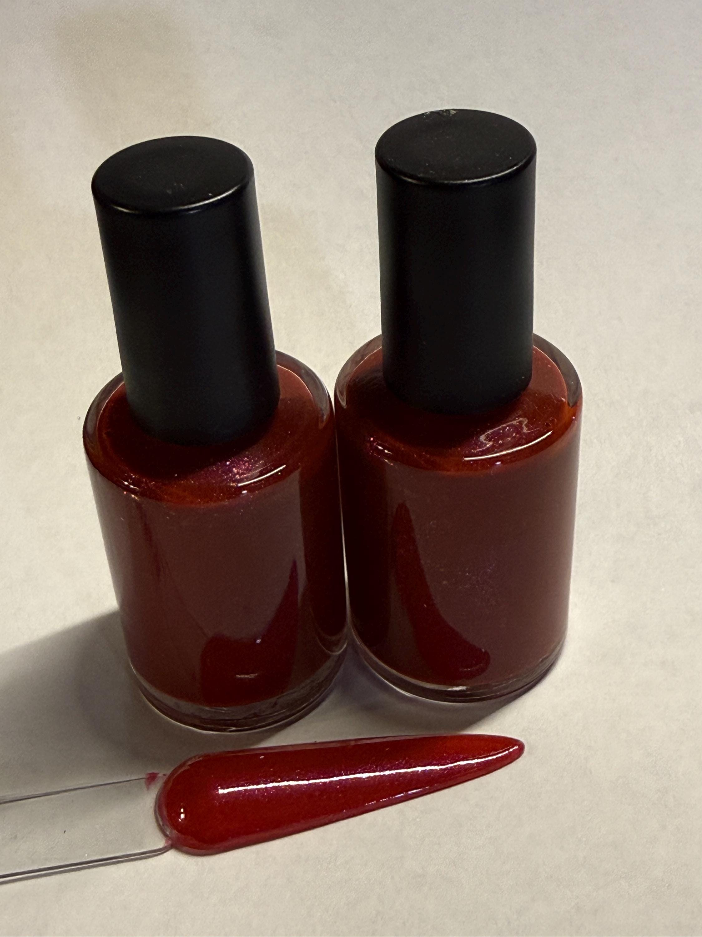 This nail polish comes in either 5 or 15ml bottles and is a red duochrome with barely-there shimmer. It's almost a mauve.