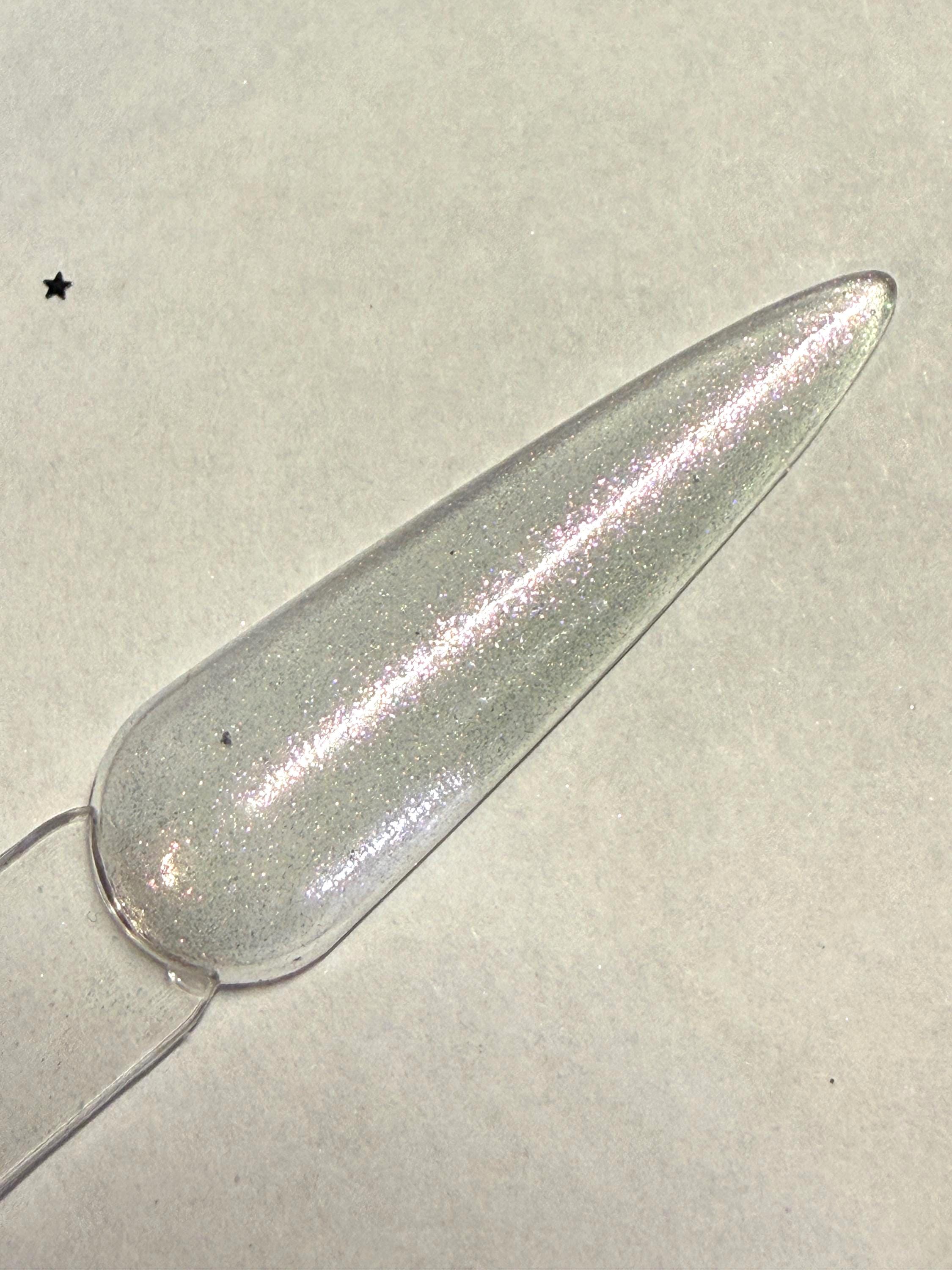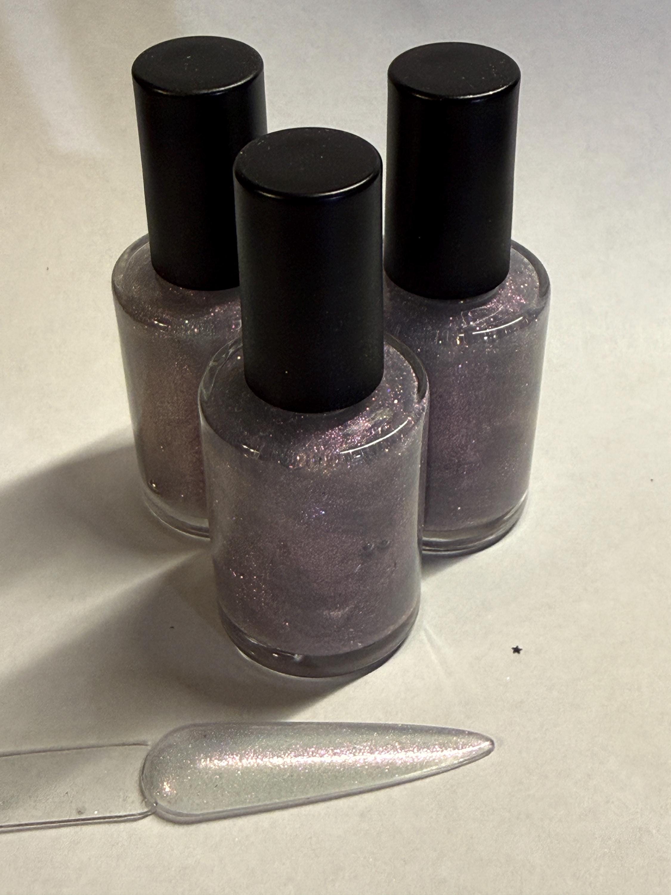 This nail polish comes in either 5 or 15ml bottles and is a white shimmer with a purple flash.