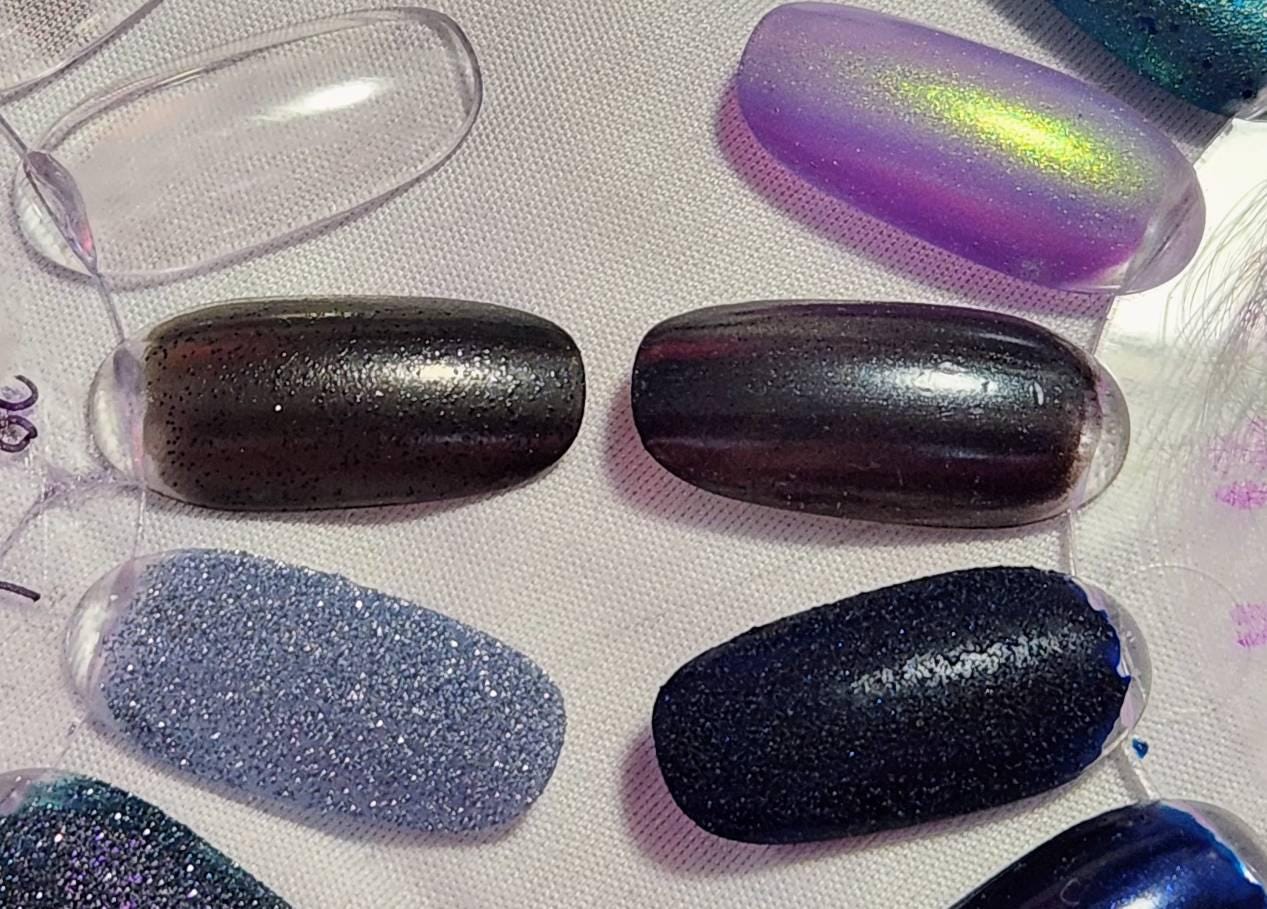 This is AMAZING. She is super prompt at replying to messages, fantastic polish, EXACTLY the color I was looking for *sobs of joy*. I will probably go back and purchase all 100 colors or however many there are. (Malicious' Raked Over the Coals is the gunmetal grey on the left in the picture; the right is Deborah Lippmann's Hit Me With Your Best Shot, which was discontinued)