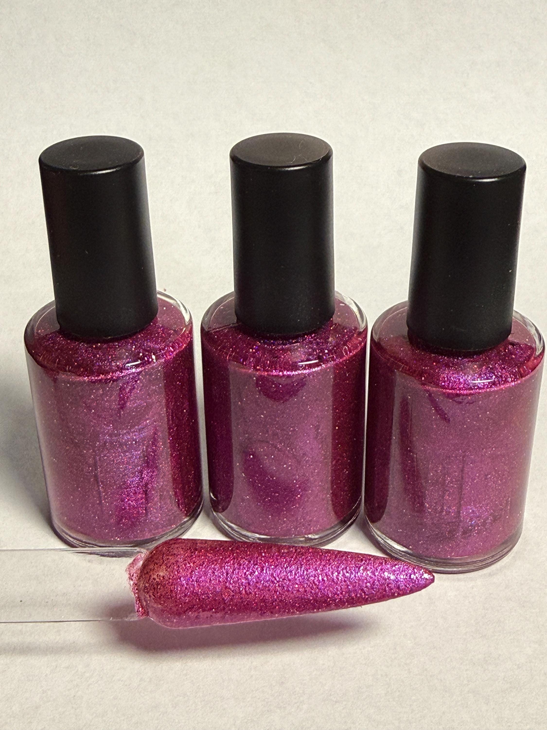 This nail polish comes in either 5 or 15ml bottles and is a shocking pink holographic.