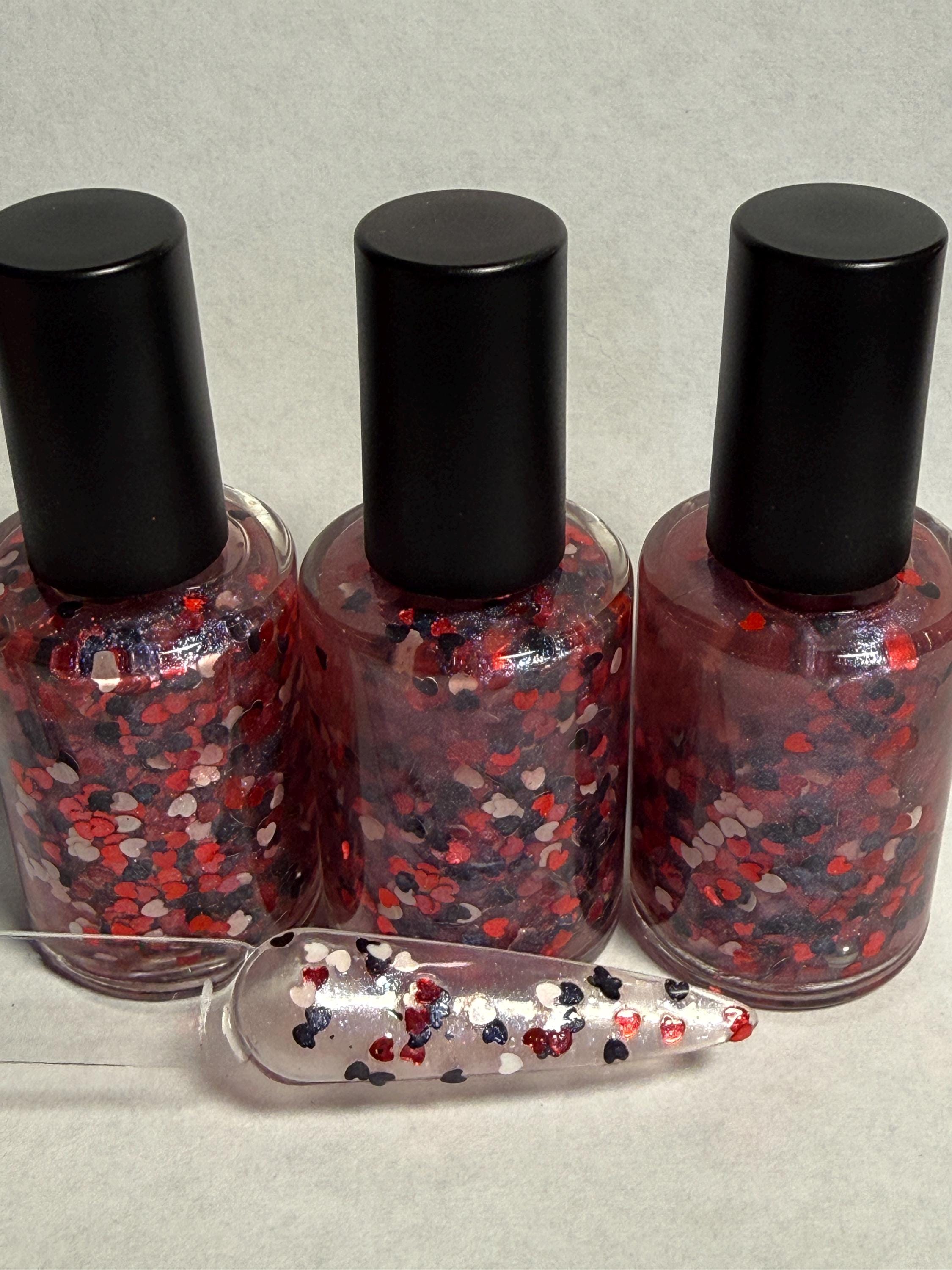 Incendiary - Black, White, and Red Heart Nail Polish 5, 15ml