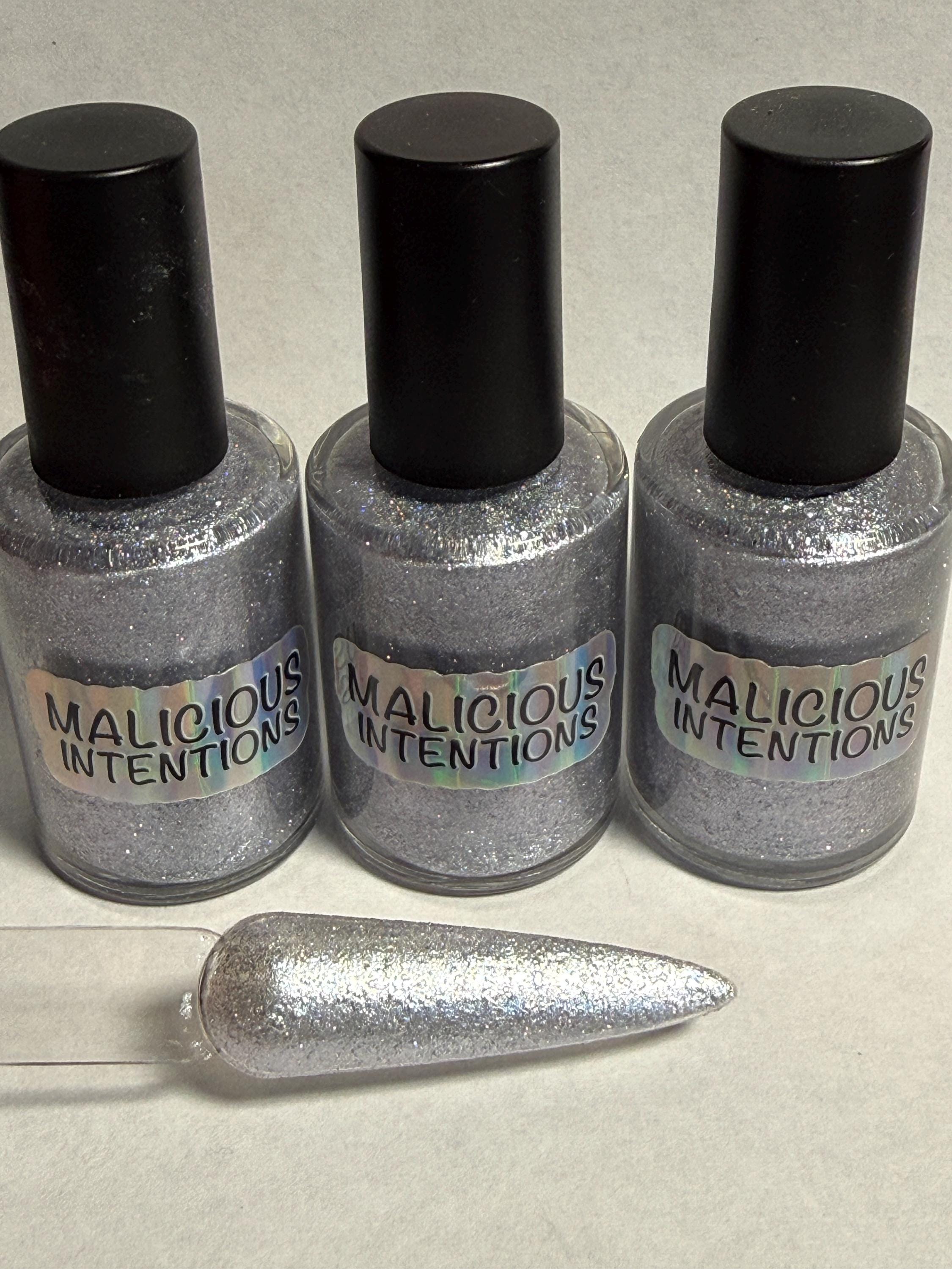 This nail polish comes in either 5 or 15ml bottles and is silver with reflective glitter.