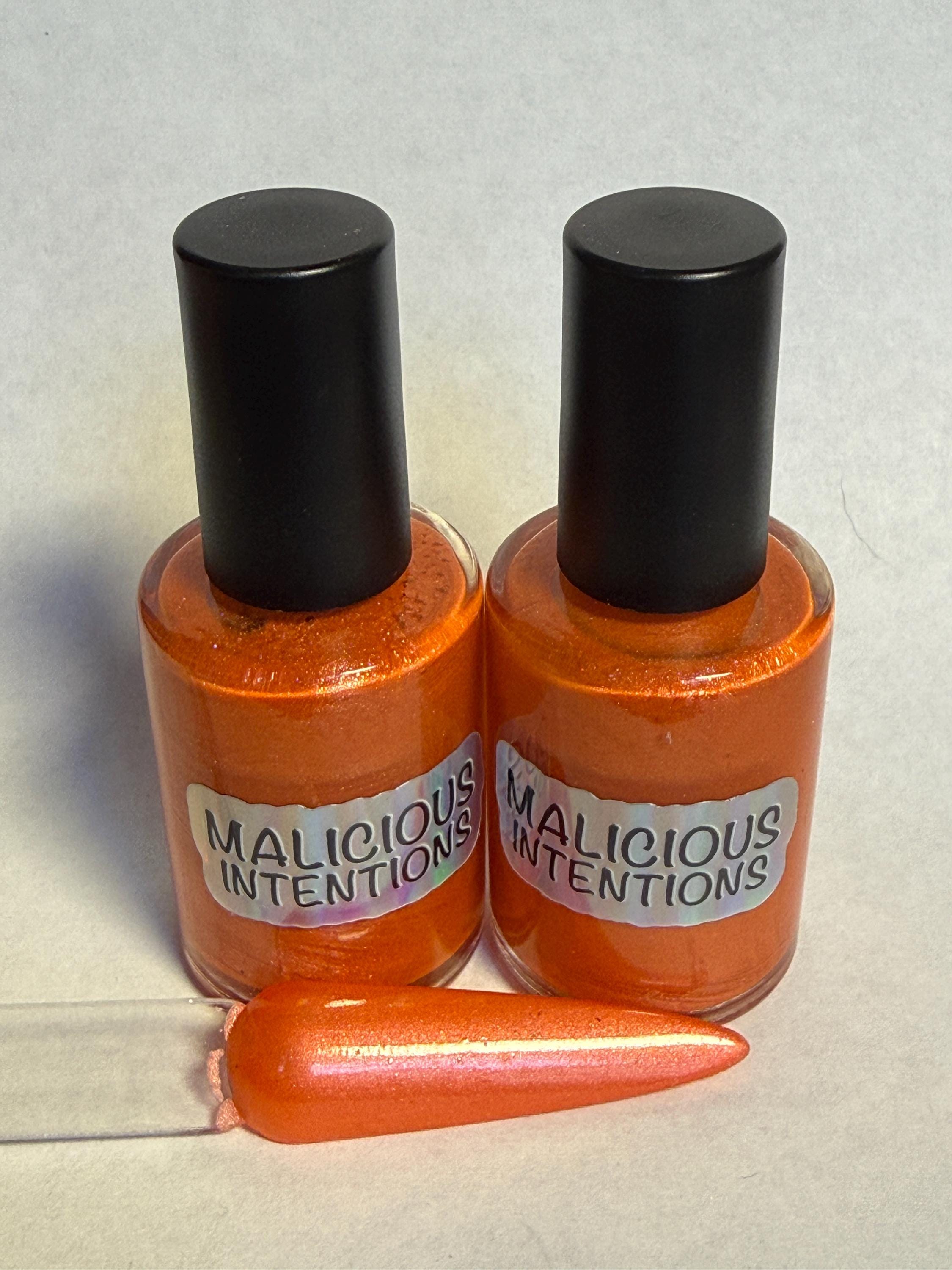 This nail polish comes in either 5 or 15ml bottles and is a bright orange shimmer.