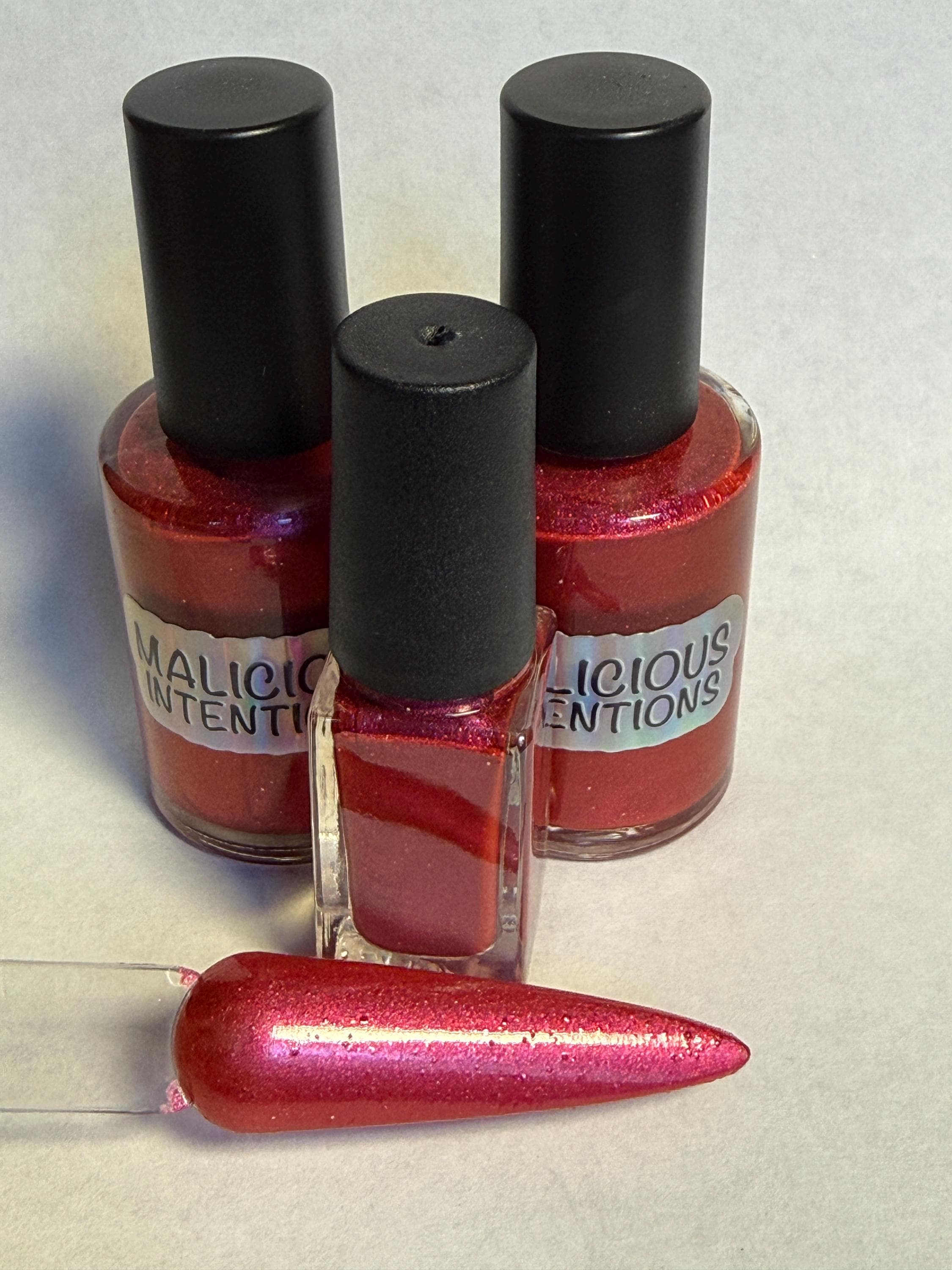 This nail polish comes in either 5 or 15ml bottles and is a bright pink with reflective particles.