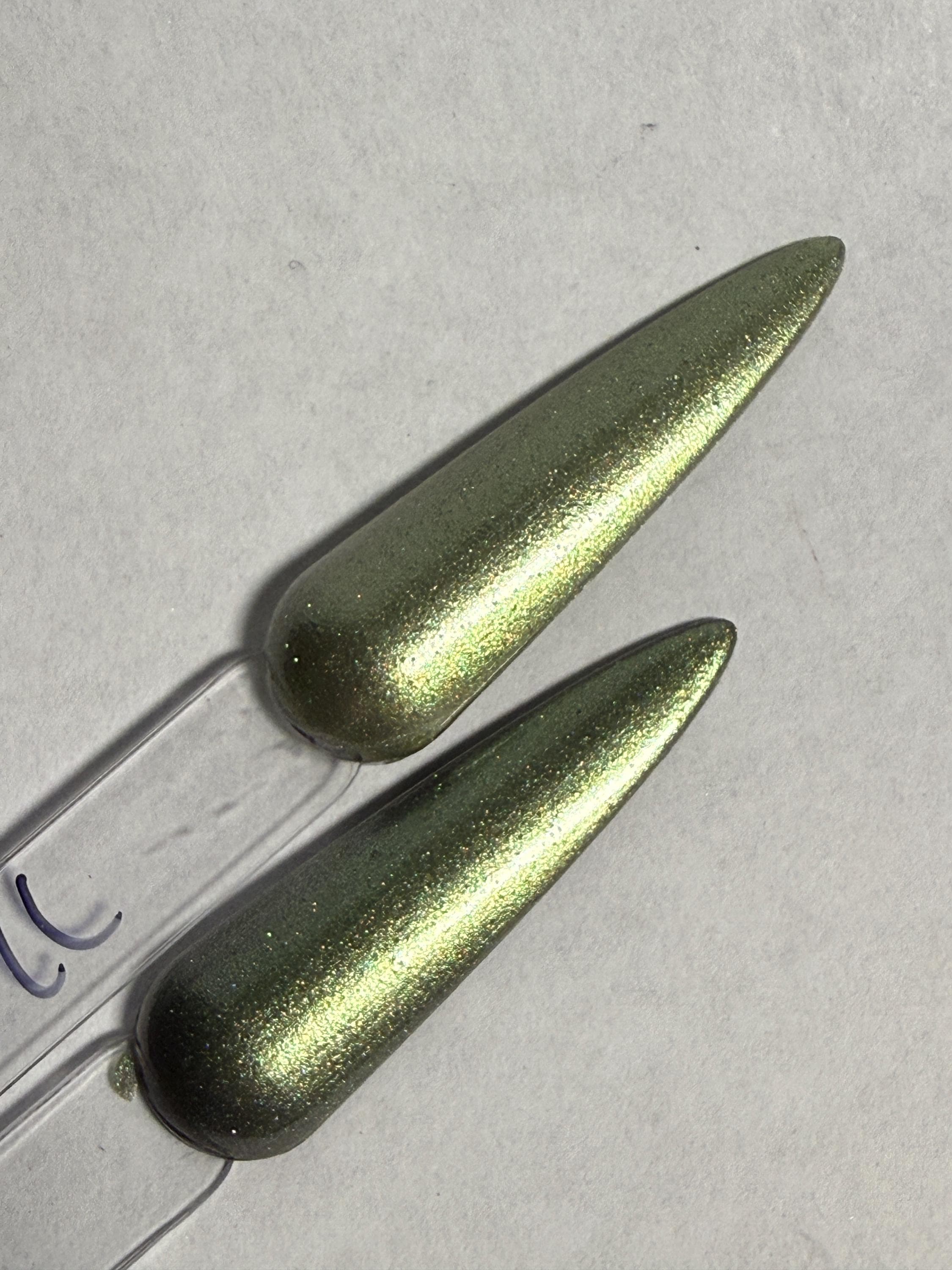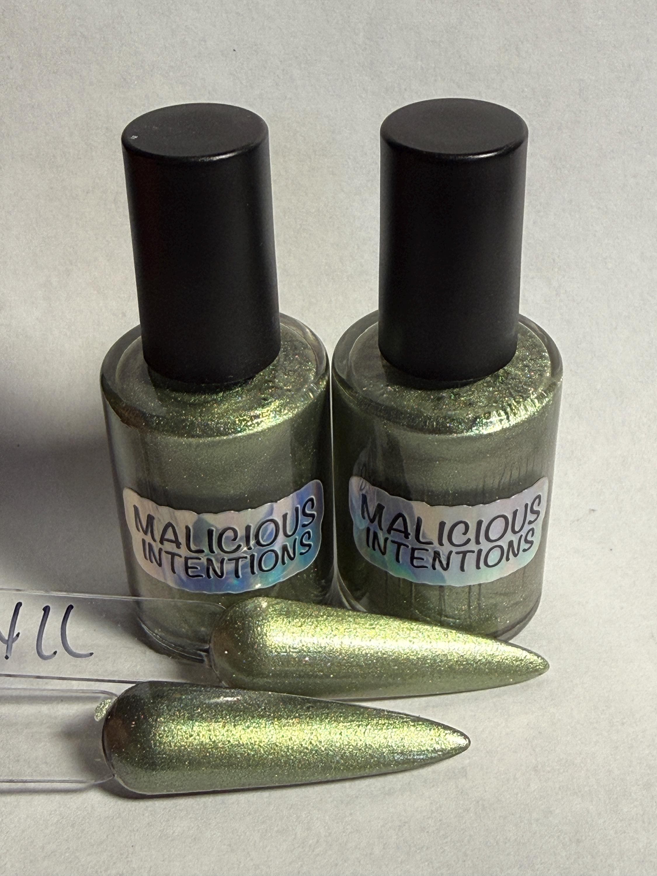 This nail polish comes in either 5 or 15ml bottles and is a magnetic spring green . You will need a magnet to take advantage of the magnetic properties within. It does not come with a magnet but if you'd like me to include one for $1, please check my other listings.