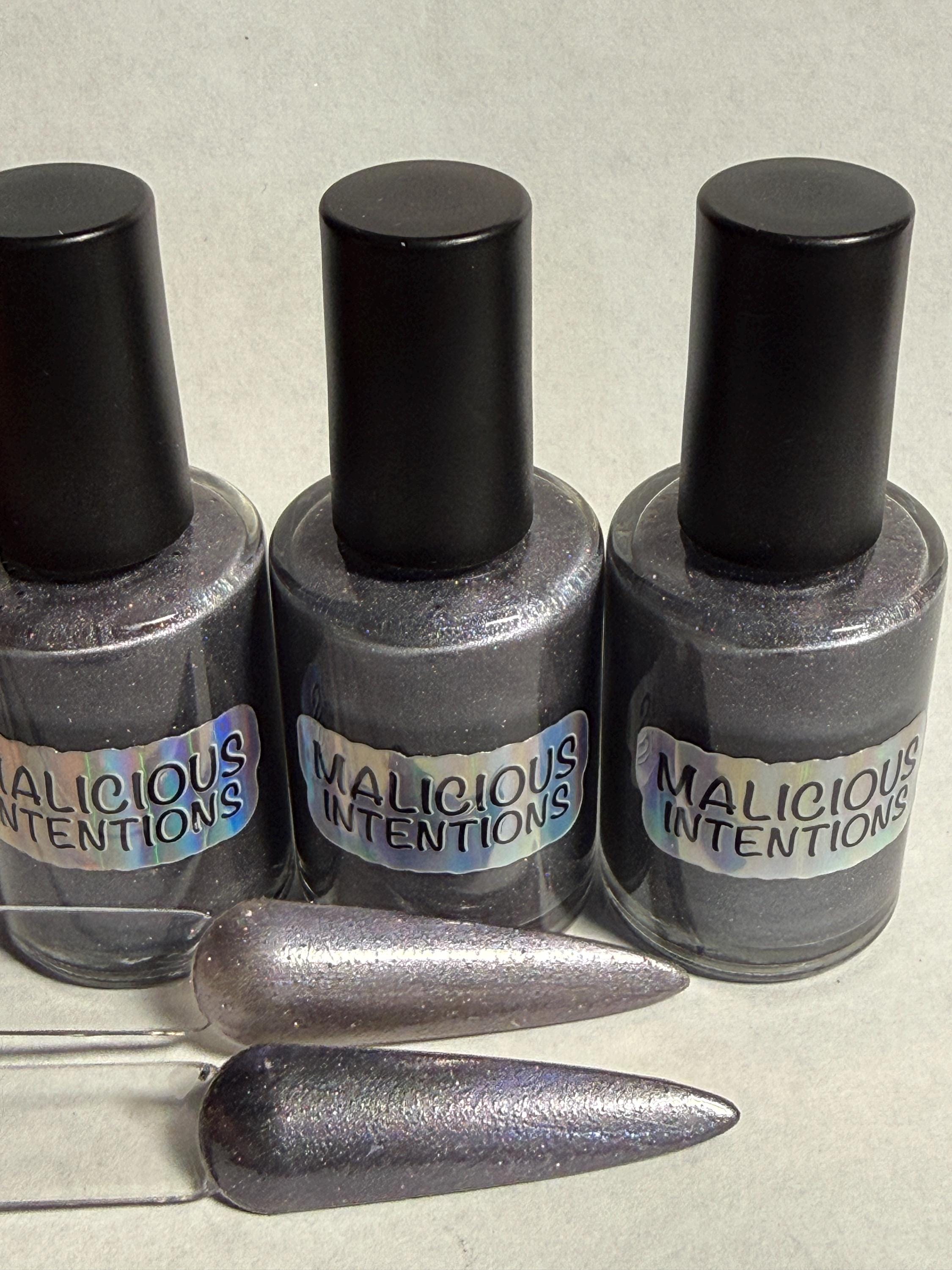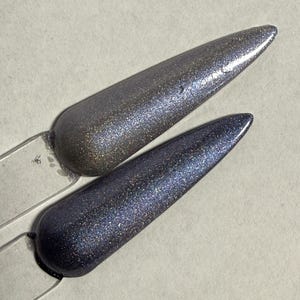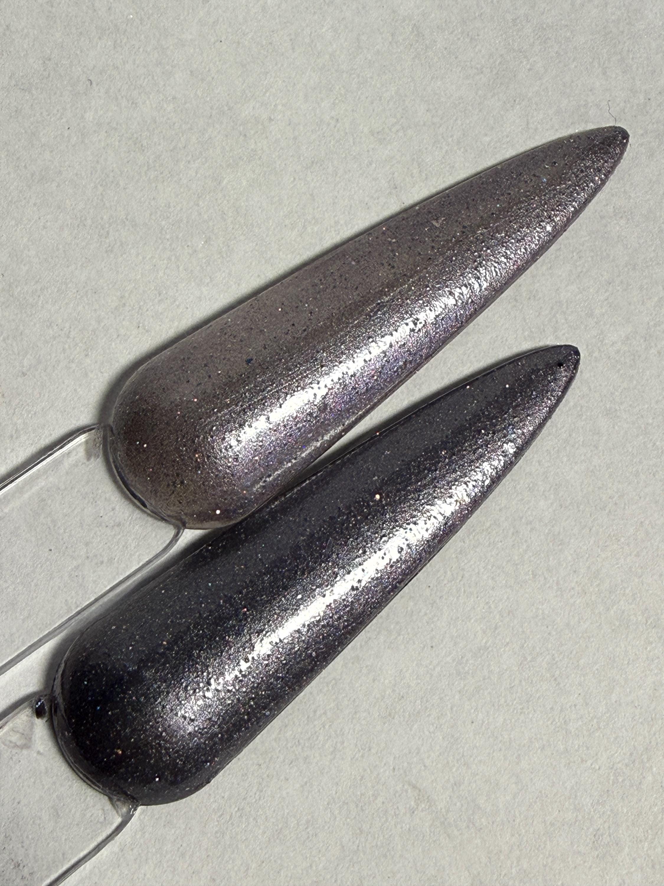 This nail polish comes in either 5 or 15ml bottles and is warm gray magnetic with a few holo flake and reflective particles in it. You will need a magnet to take advantage of the magnetic properties within. It does not come with a magnet but if you'd like me to include one for $1, please check my other listings.