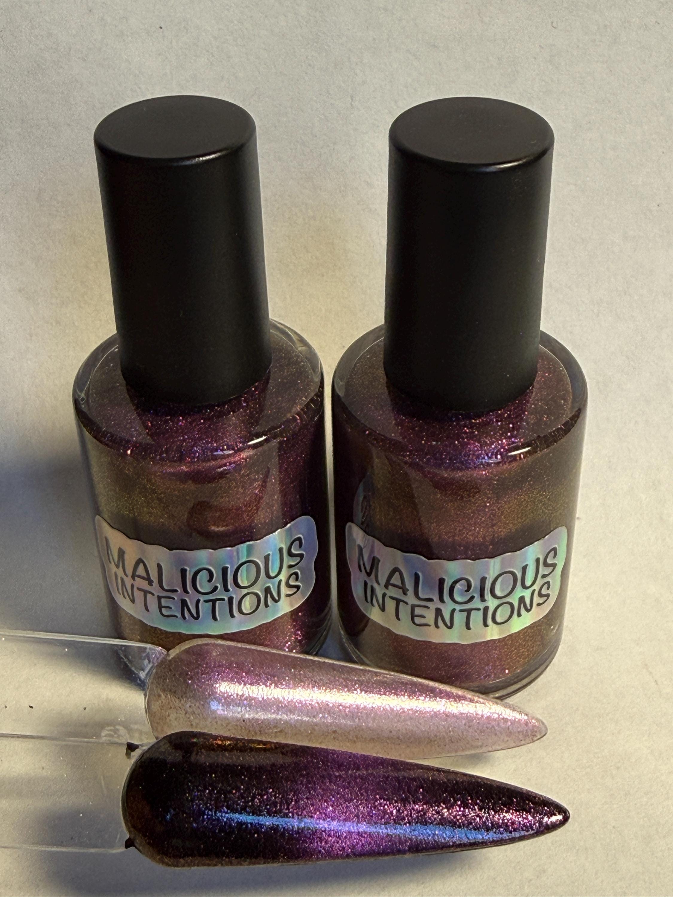 This nail polish comes in either 5 or 15ml bottles and is a magnetic silvery pink. You will need a magnet to take advantage of the magnetic properties within. It does not come with a magnet but if you'd like me to include one for $1, please check my other listings.