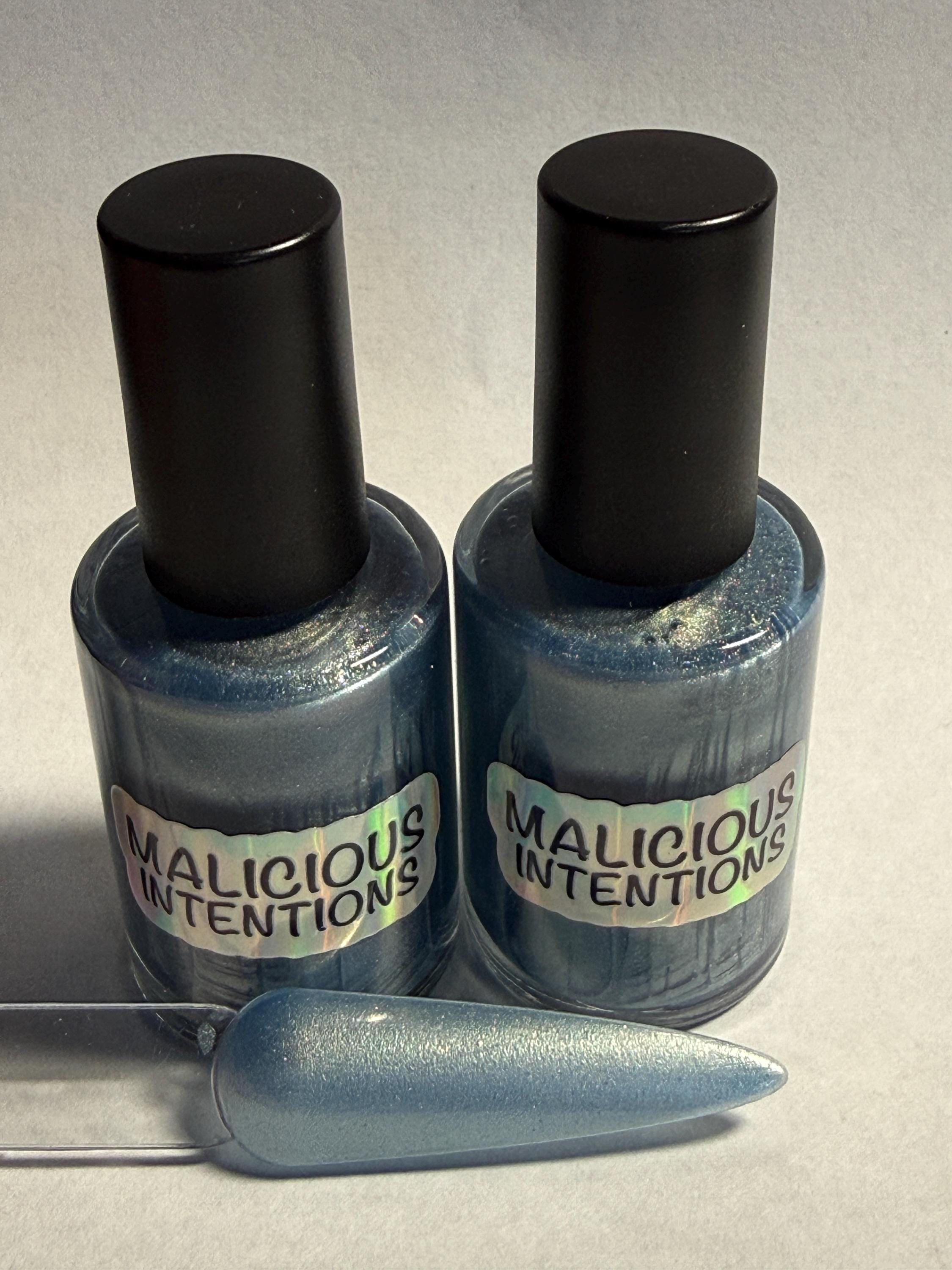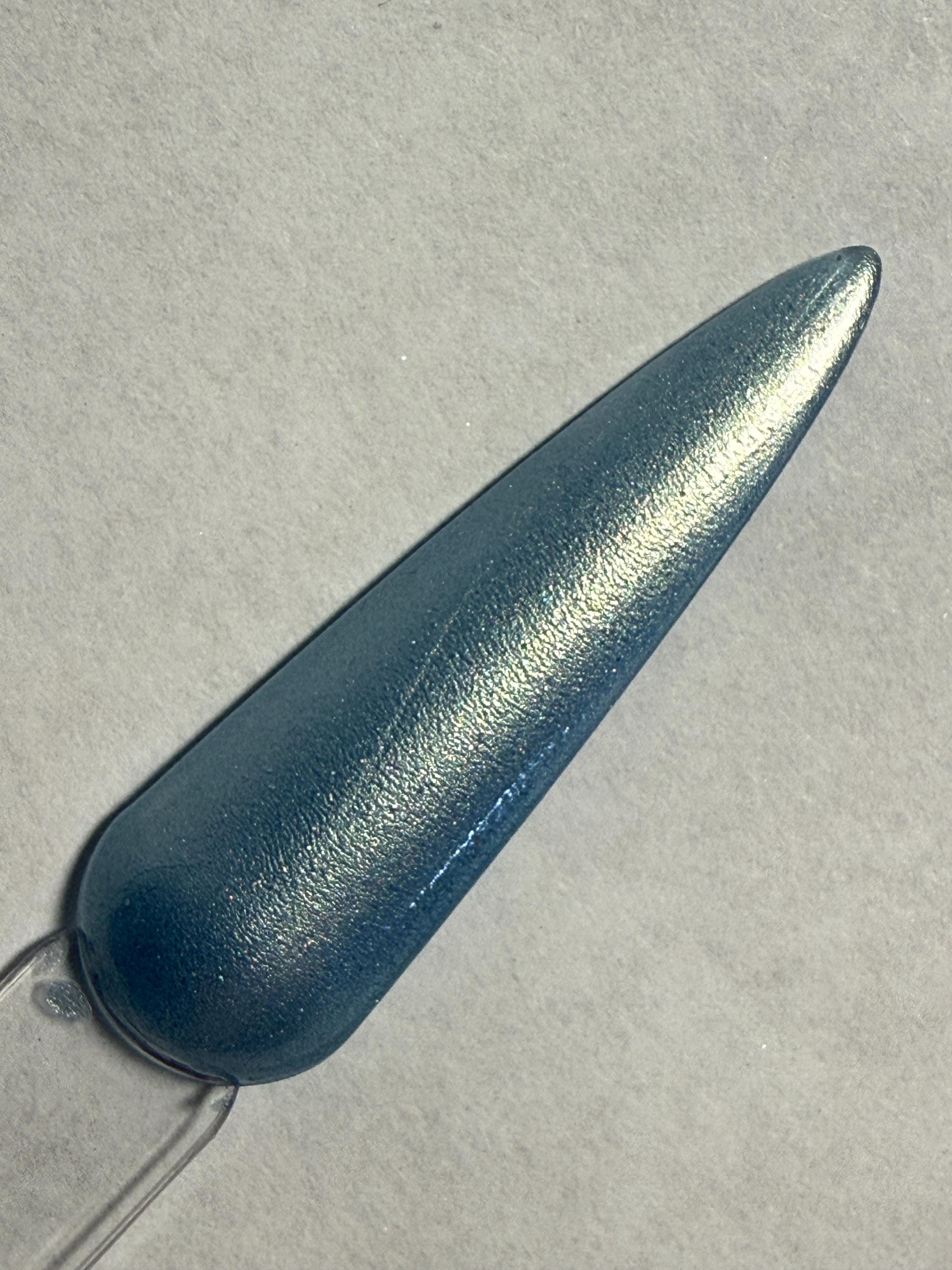 This nail polish comes in either 5 or 15ml bottles and is a shimmery blue/green/gold multichrome.