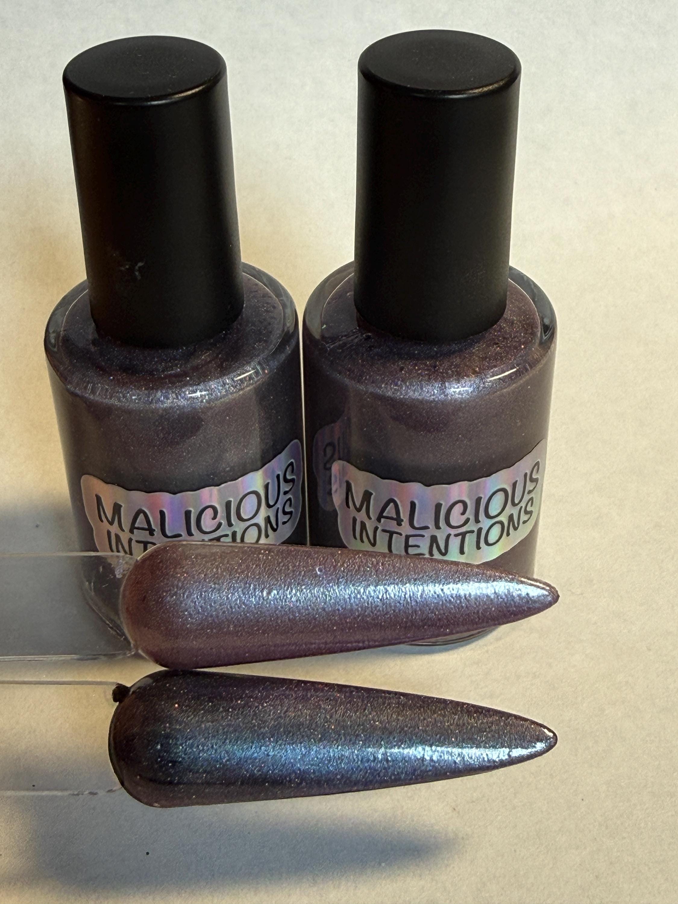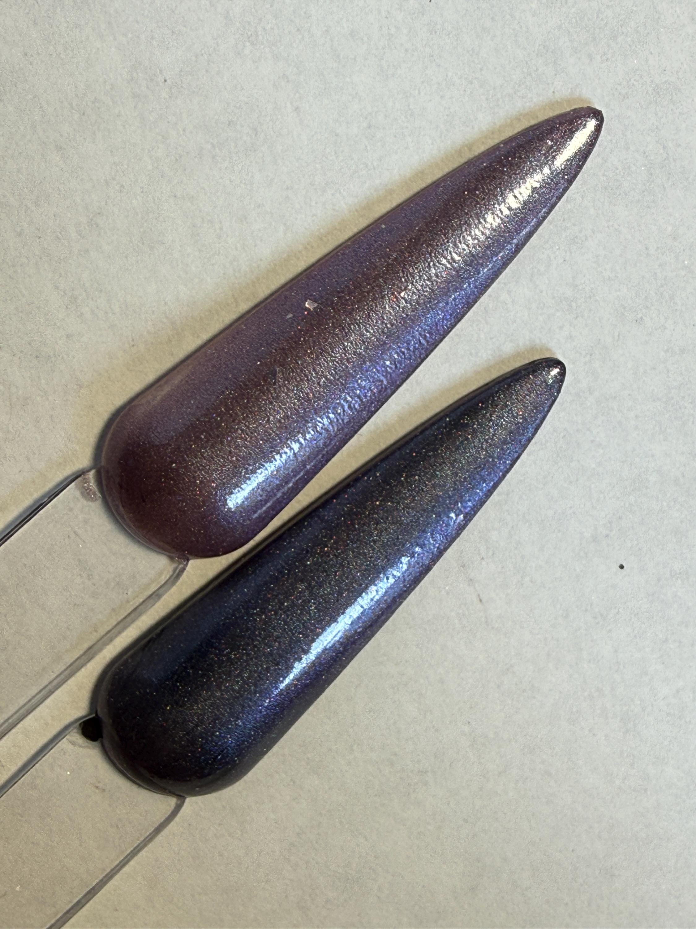 This nail polish comes in either 5 or 15ml bottles and is a magnetic lilac holo with holographic flakes. You will need a magnet to take advantage of the magnetic properties within. It does not come with a magnet but if you'd like me to include one for $1, please check my other listings.