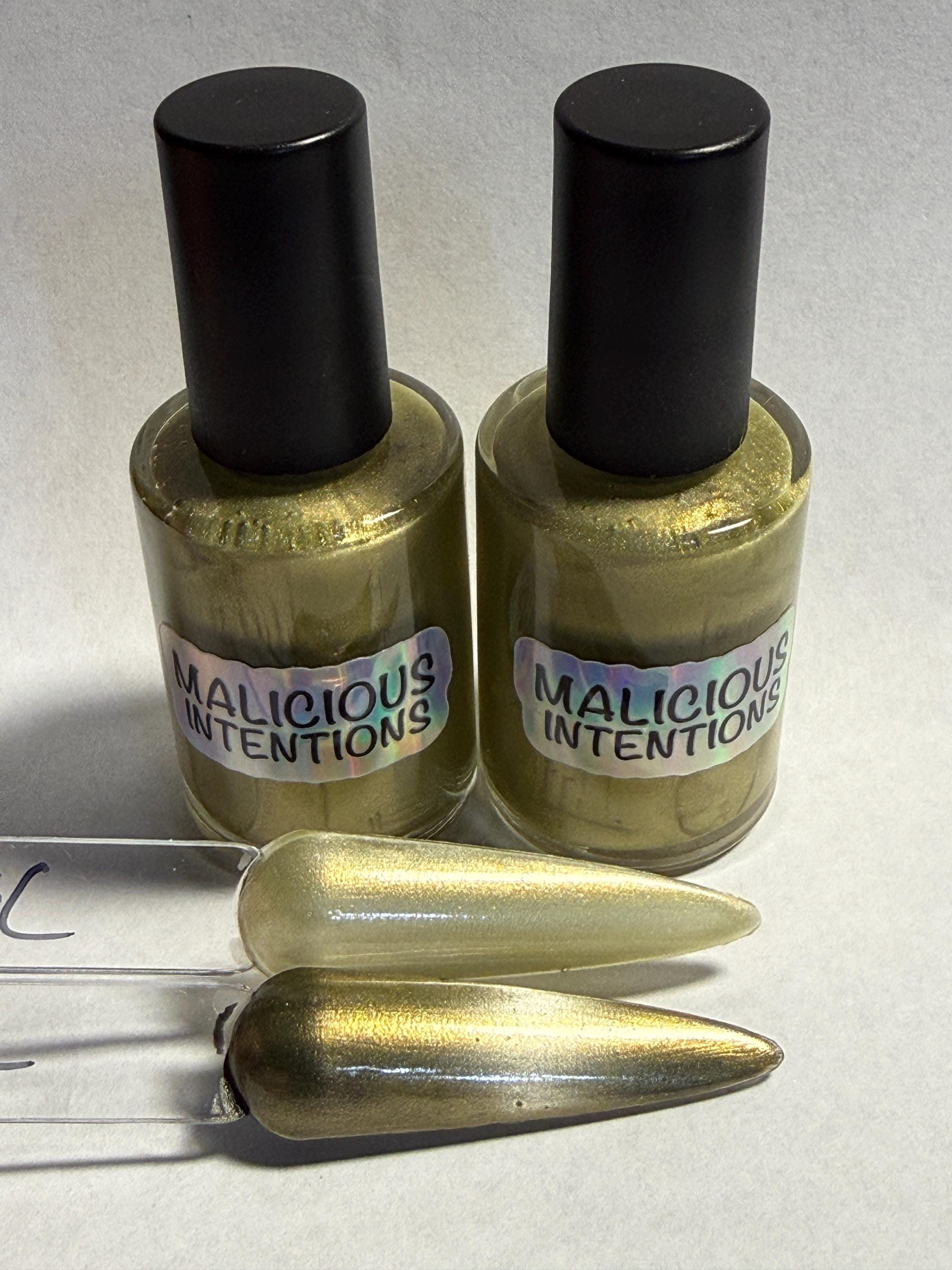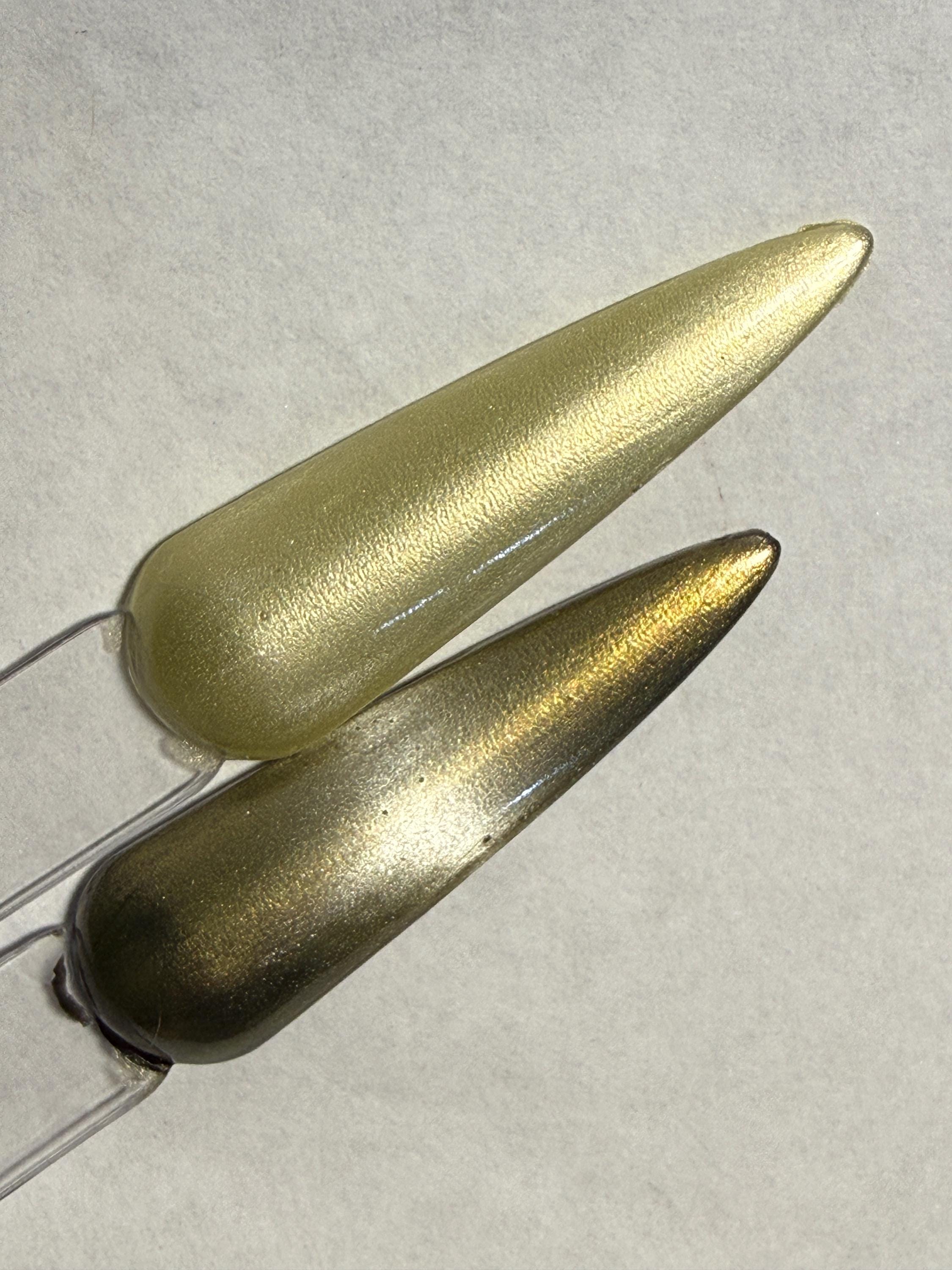 This nail polish comes in either 5 or 15ml bottles and is a magnetic yellow with a silver shift. You will need a magnet to take advantage of the magnetic properties within. It does not come with a magnet but if you'd like me to include one for $1, please check my other listings.