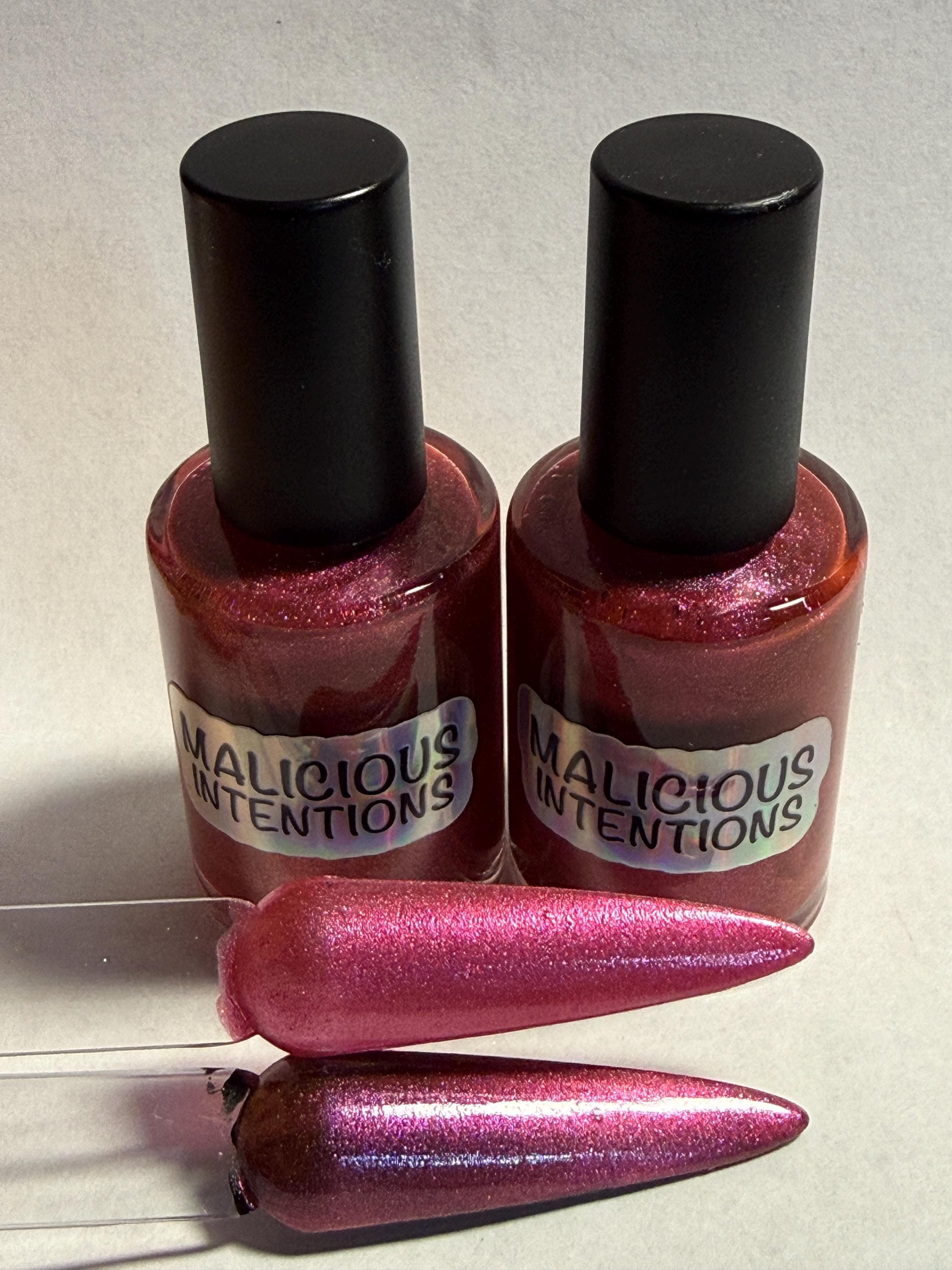 This nail polish comes in either 5 or 15ml bottles and is a magnetic pink holo. You will need a magnet to take advantage of the magnetic properties within. It does not come with a magnet but if you'd like me to include one for $1, please check my other listings.