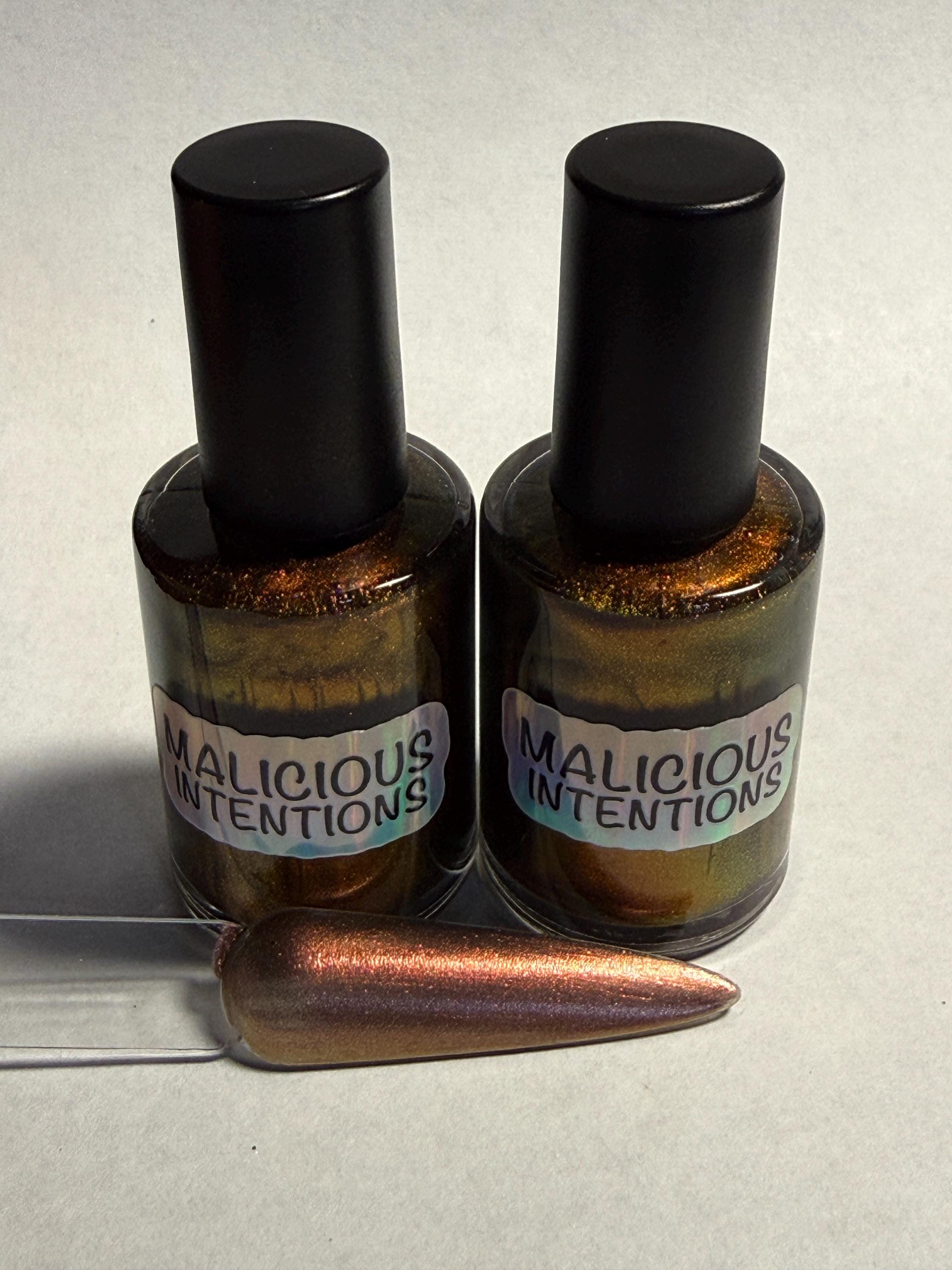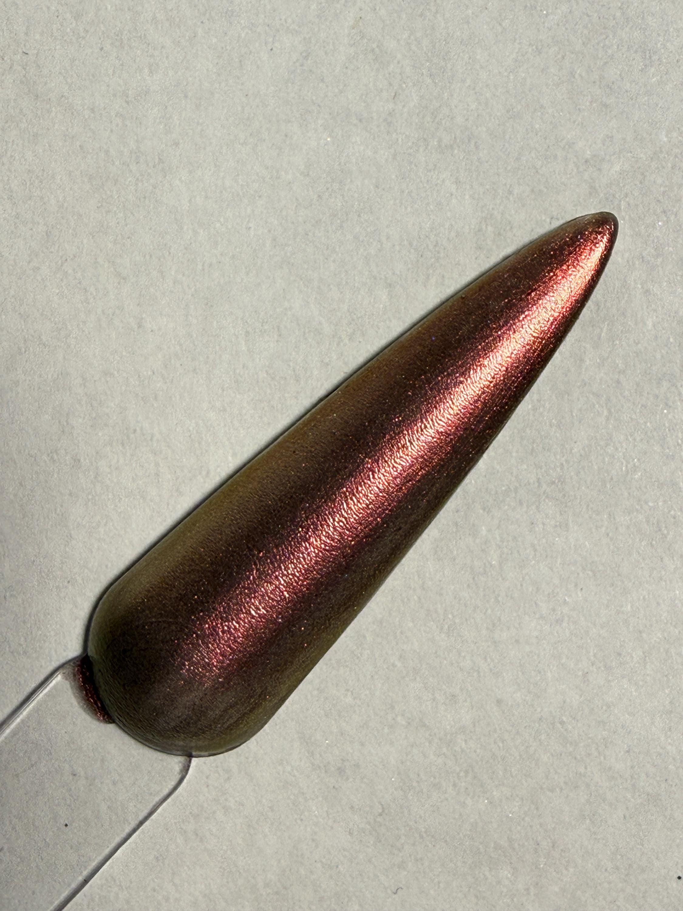This nail polish comes in either 5 or 15ml bottles and is a dark bronze chameleon.