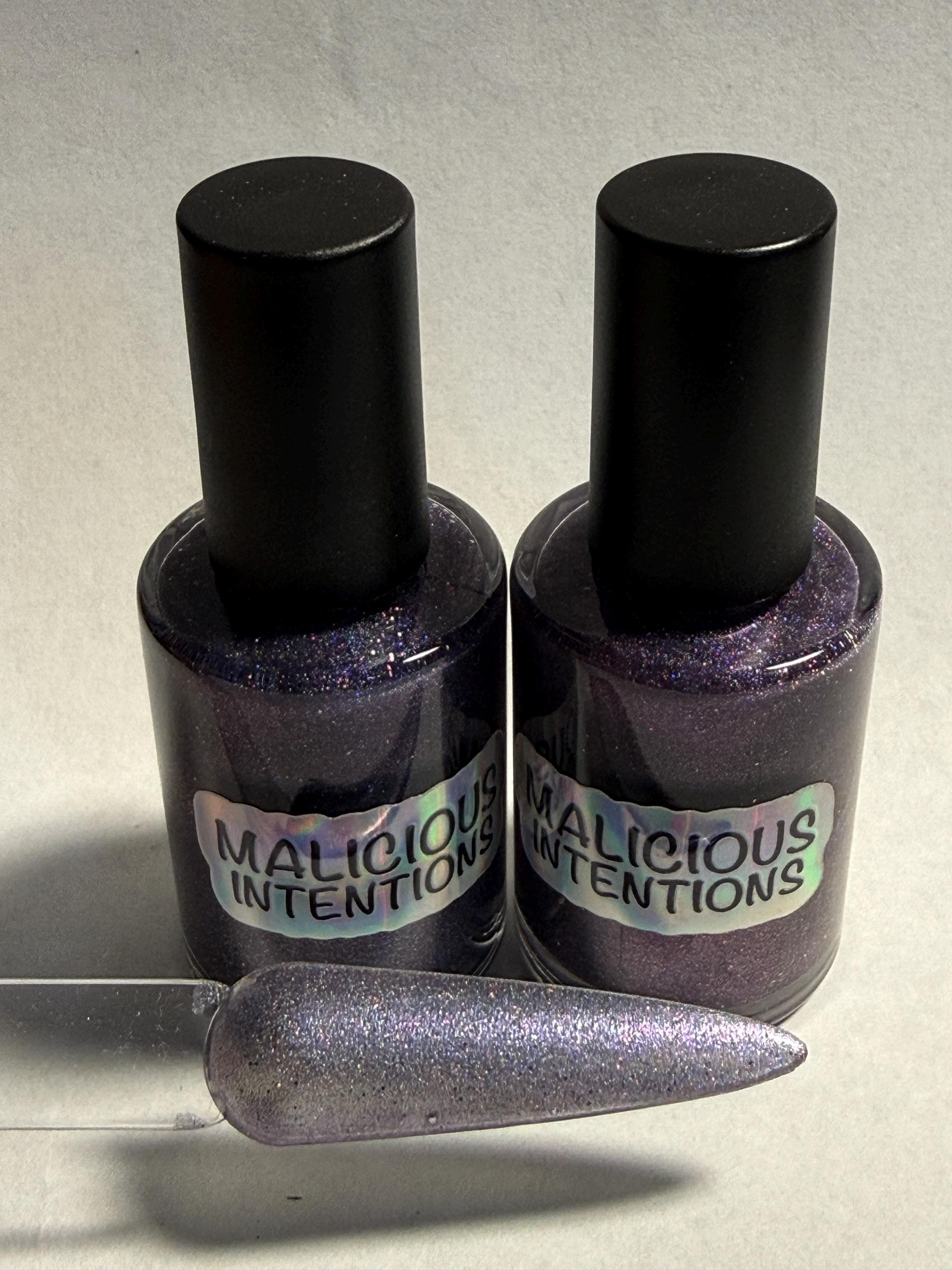 This nail polish comes in either 5 or 15ml bottles and is a purple packed with holographic glitter.