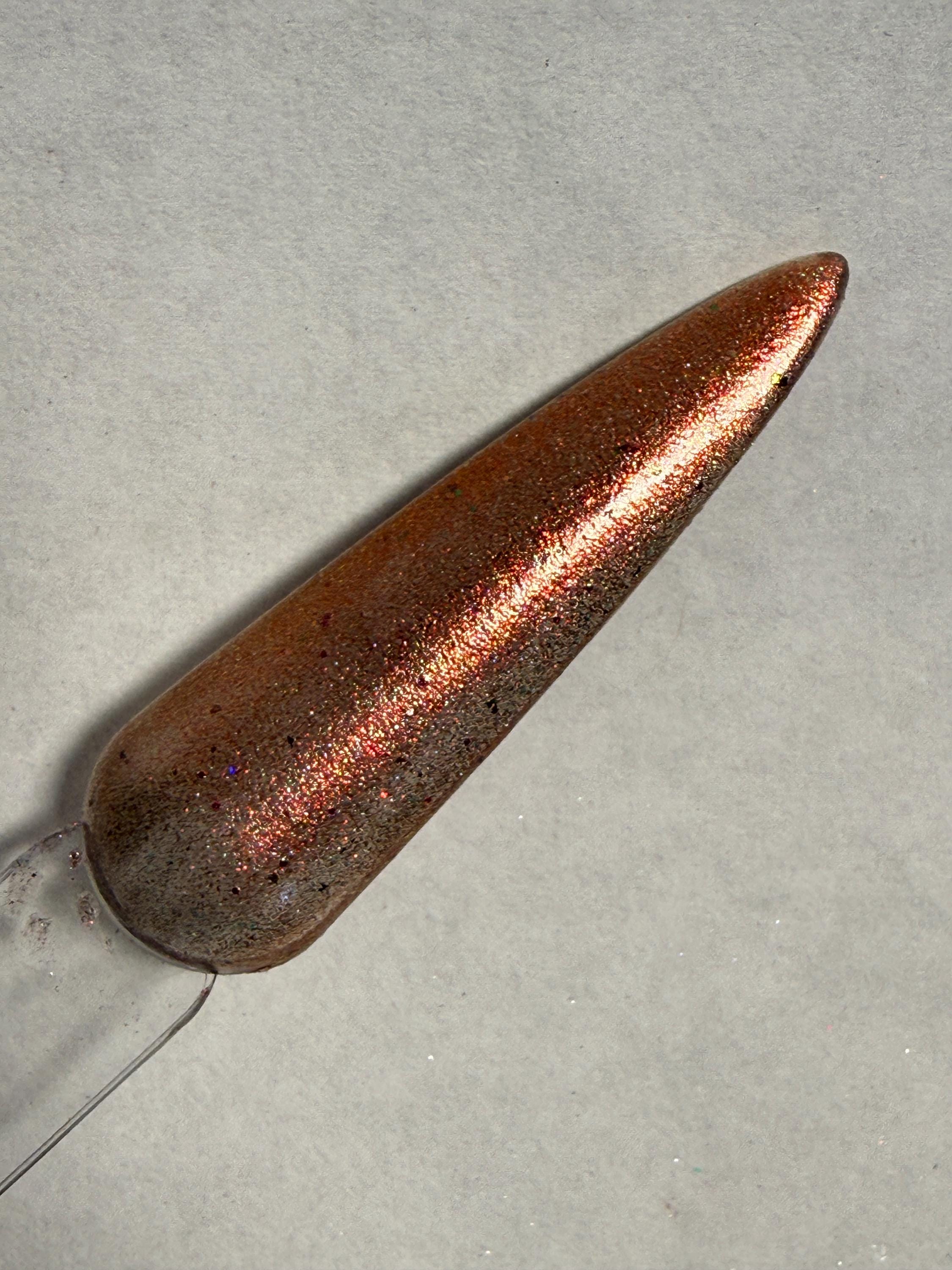 This nail polish comes in either 5 or 15ml bottles and its an orange/bronze duochrome. A non-magnetic version of Maple Syrup.