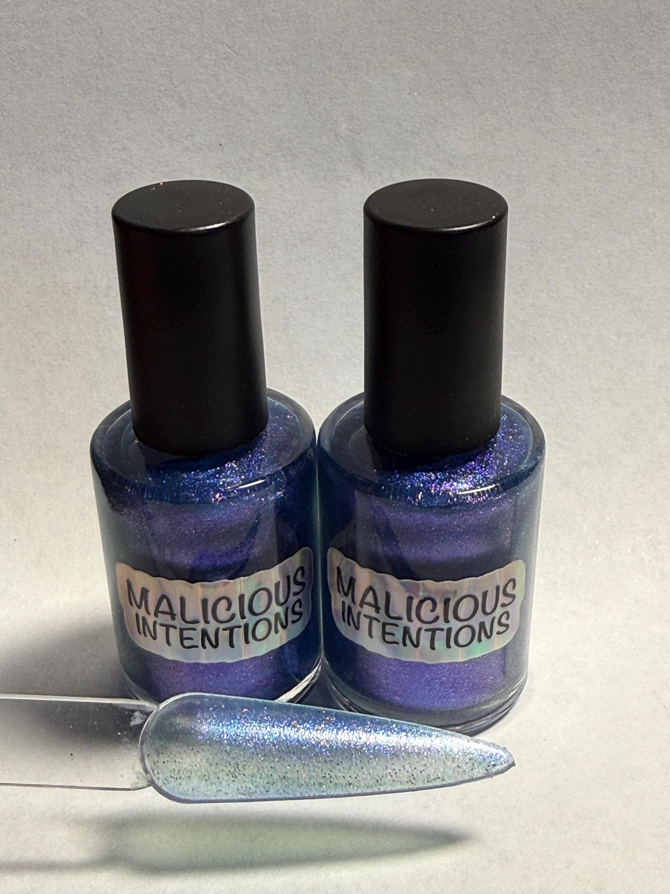 This nail polish comes in either 5 or 15ml bottles and is a sheer ocean blue chameleon with a pink flash.