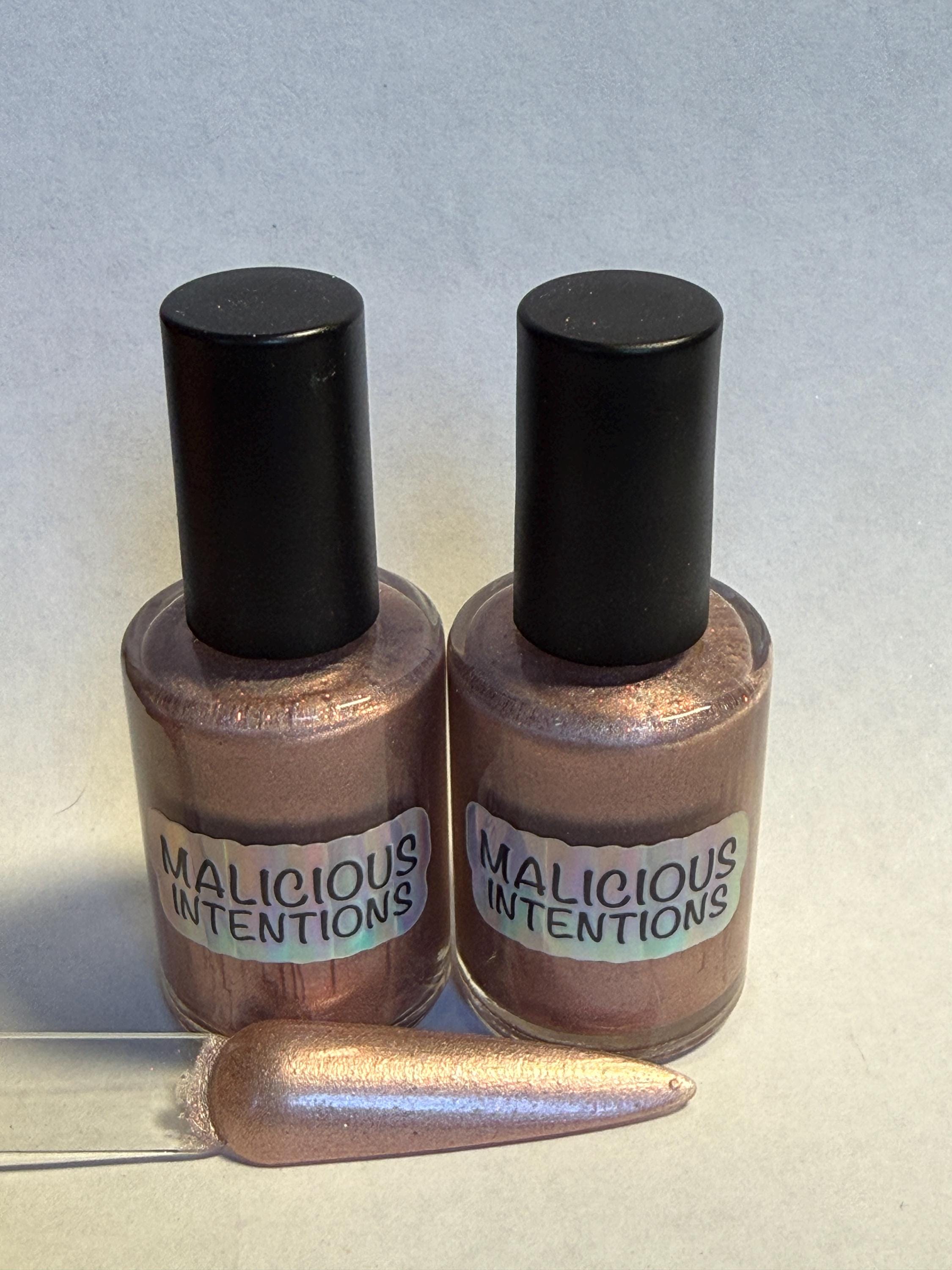 This nail polish comes in either 5 or 15ml bottles and its a orangy pink shimmer with very fine orange glitter.
