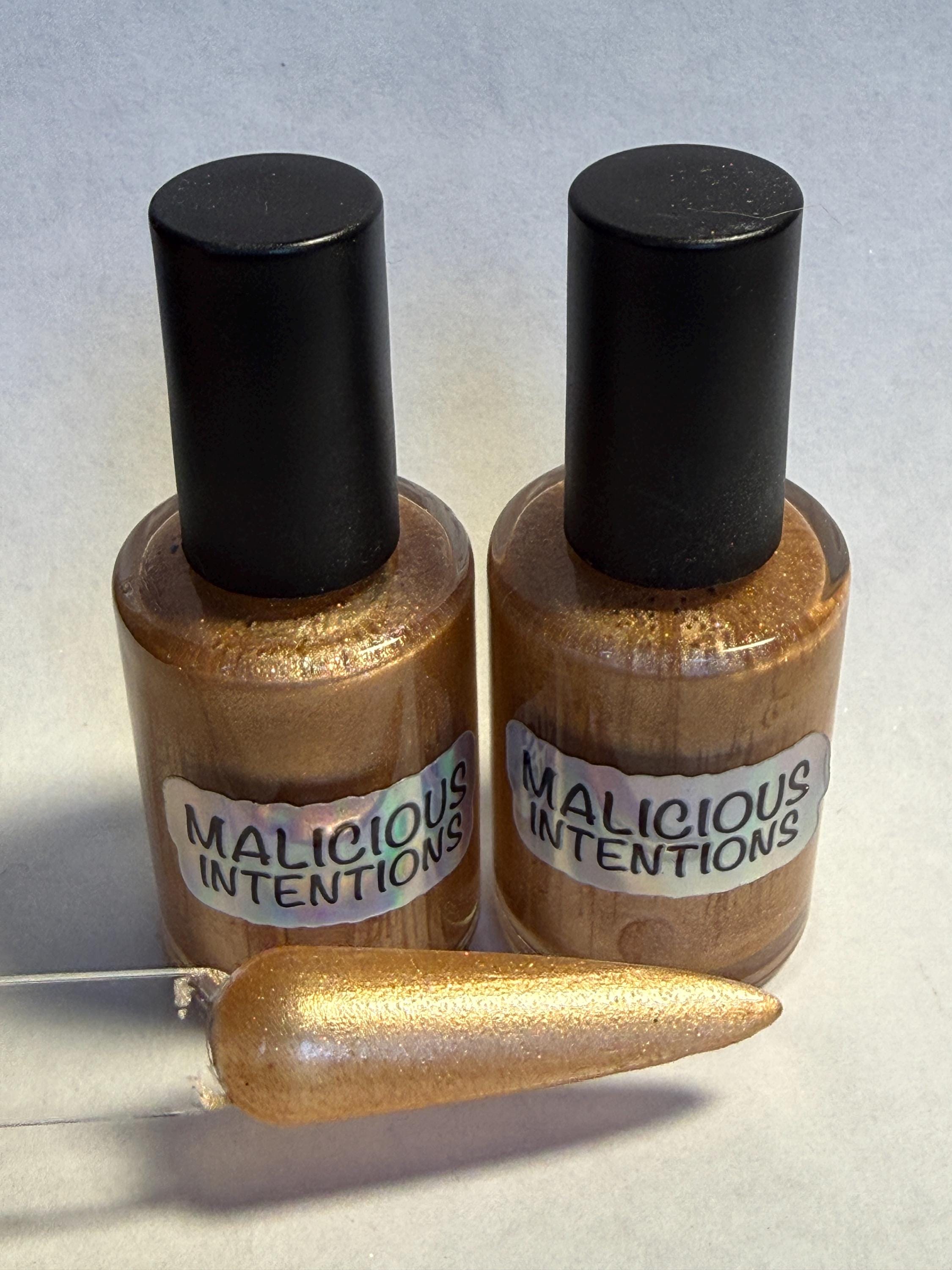 This nail polish comes in either 5 or 15ml bottles and its a medium gold with a touch of holo.
