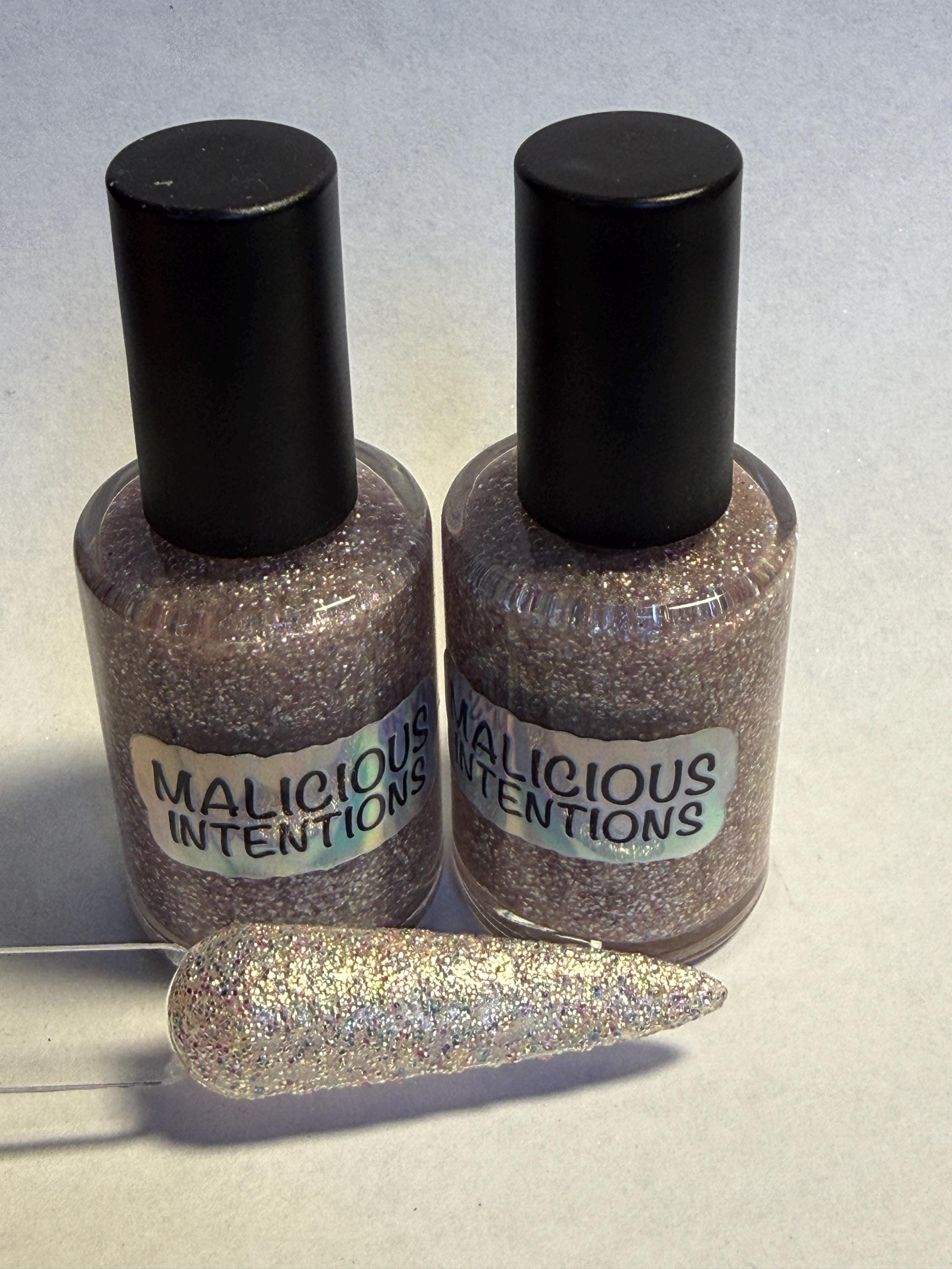 The brush is a wide fan/paddle brush and there is a metal mixing bead inside. The formula is a 21-free glitter suspension base.