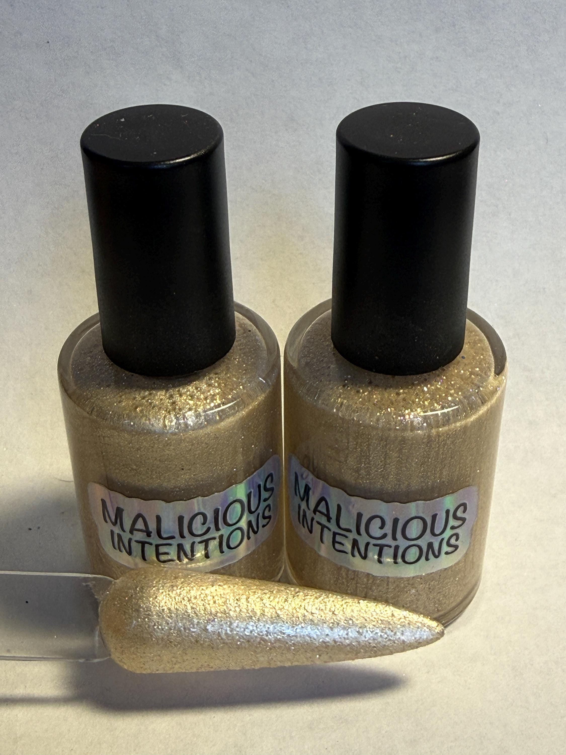 This nail polish comes in either 5 or 15ml bottles and is a white gold shimmer.