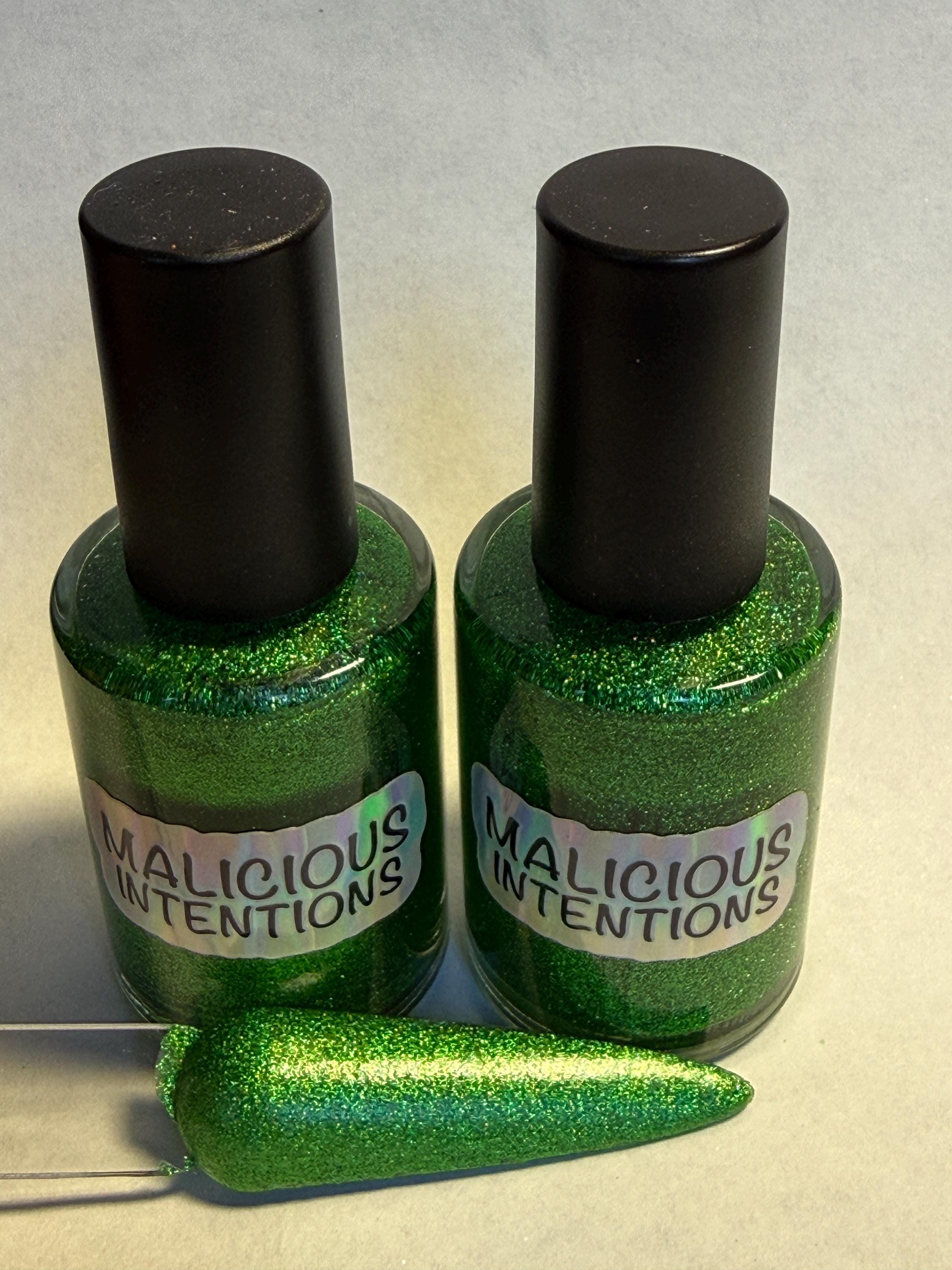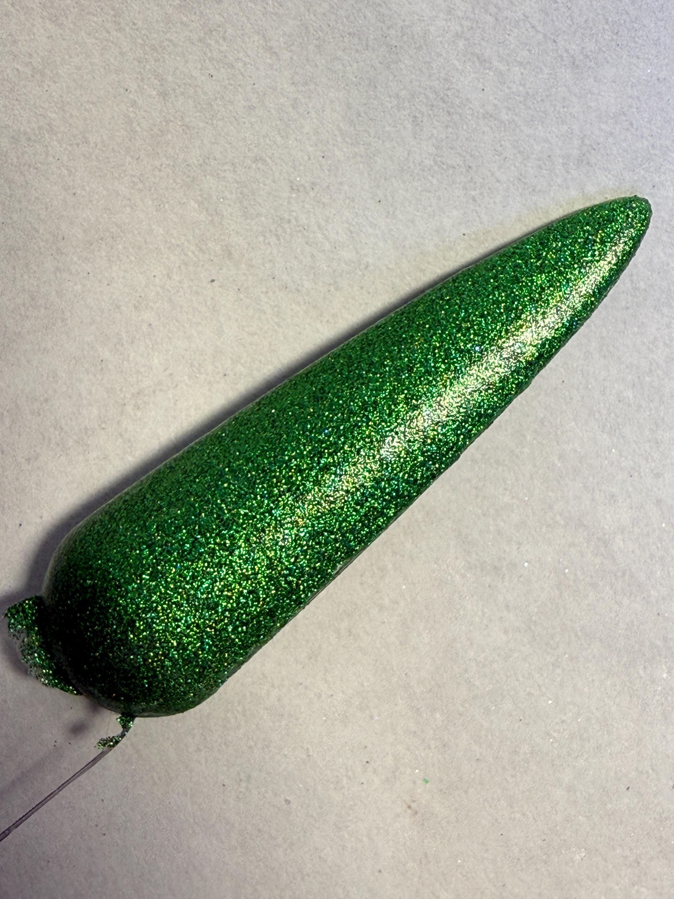 This nail polish comes in either 5 or 15ml bottles and is a very finely milled Christmas green holographic.