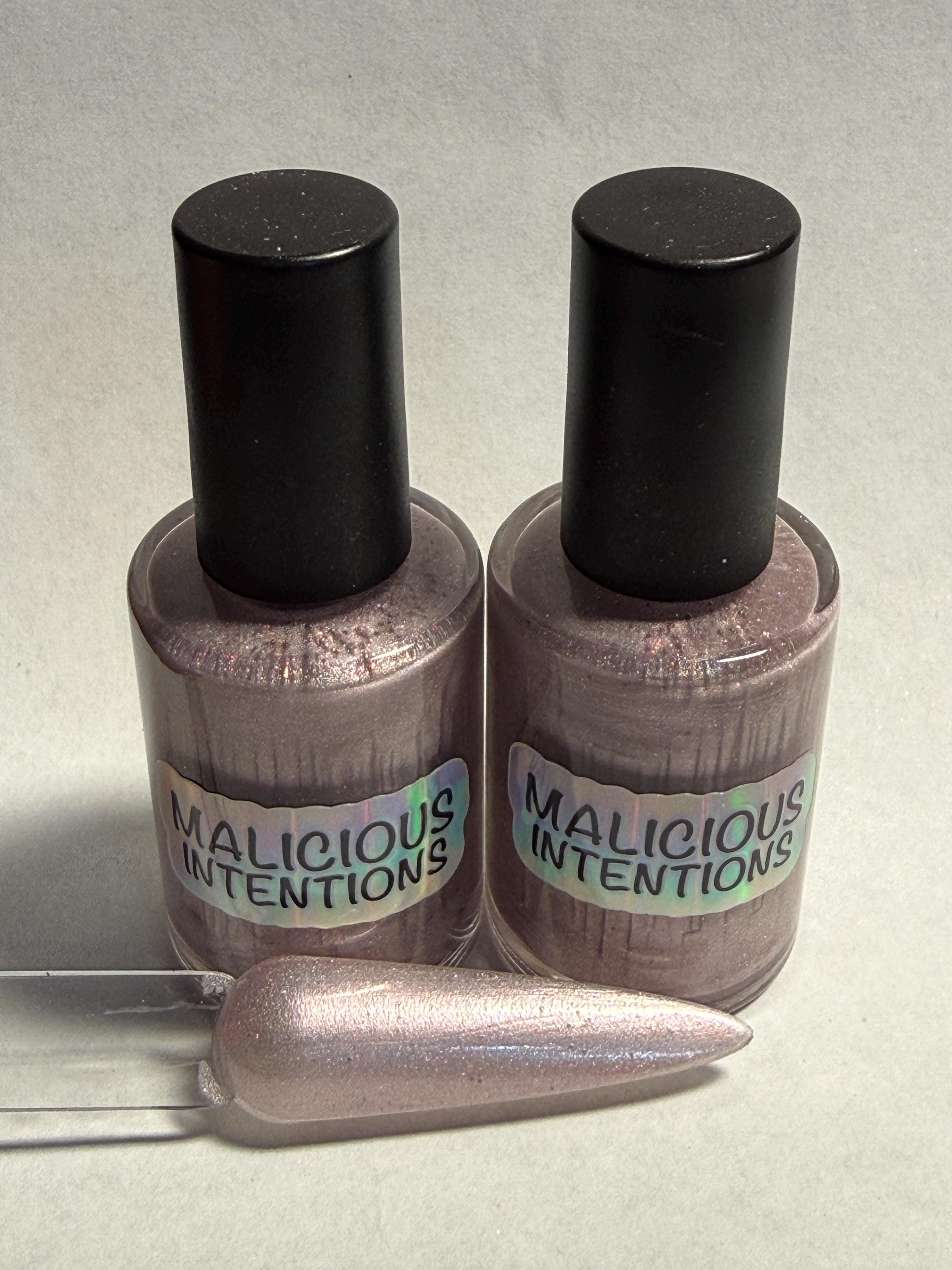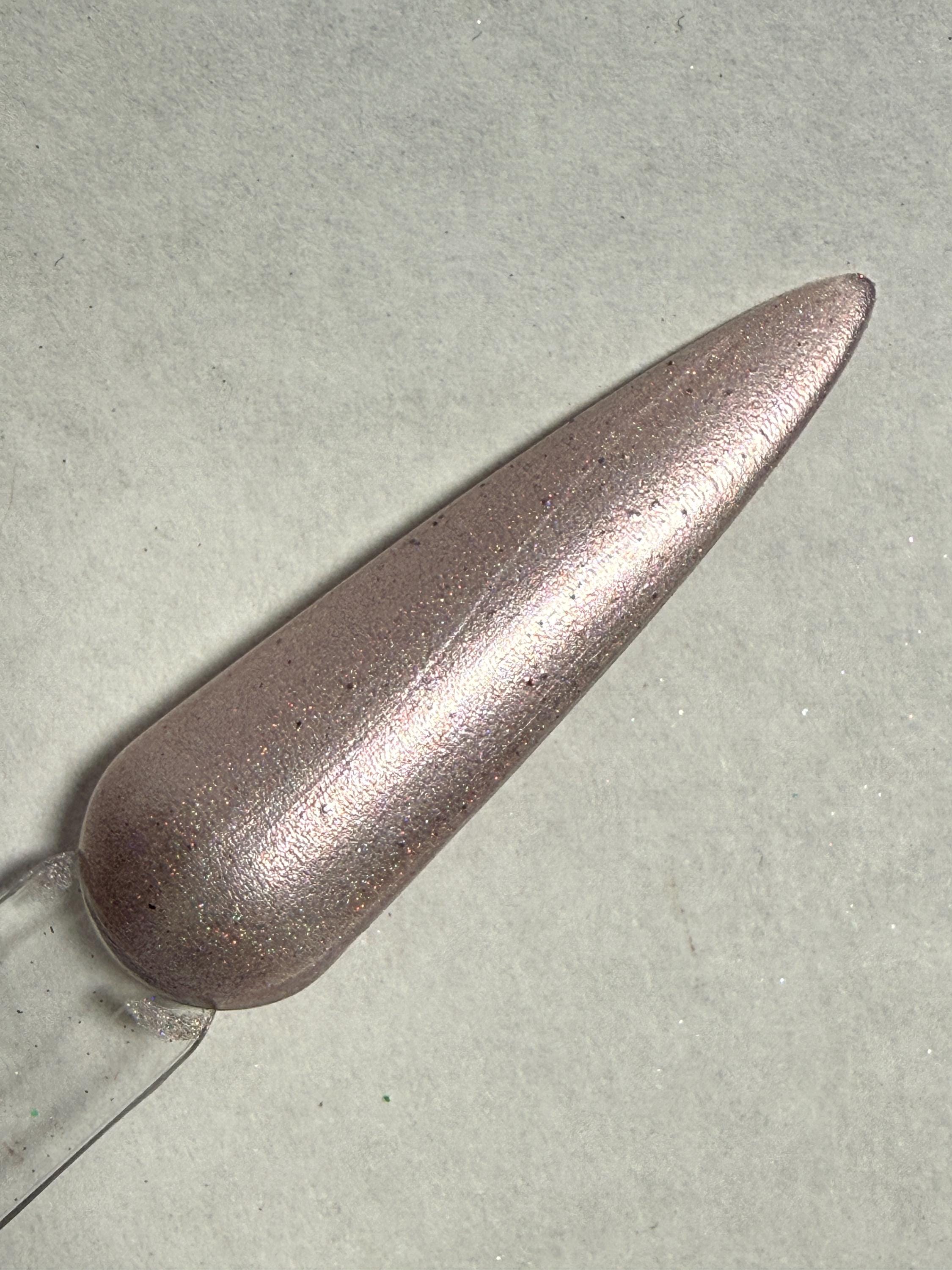 This nail polish comes in either 5 or 15ml bottles and is a very light pink holographic.