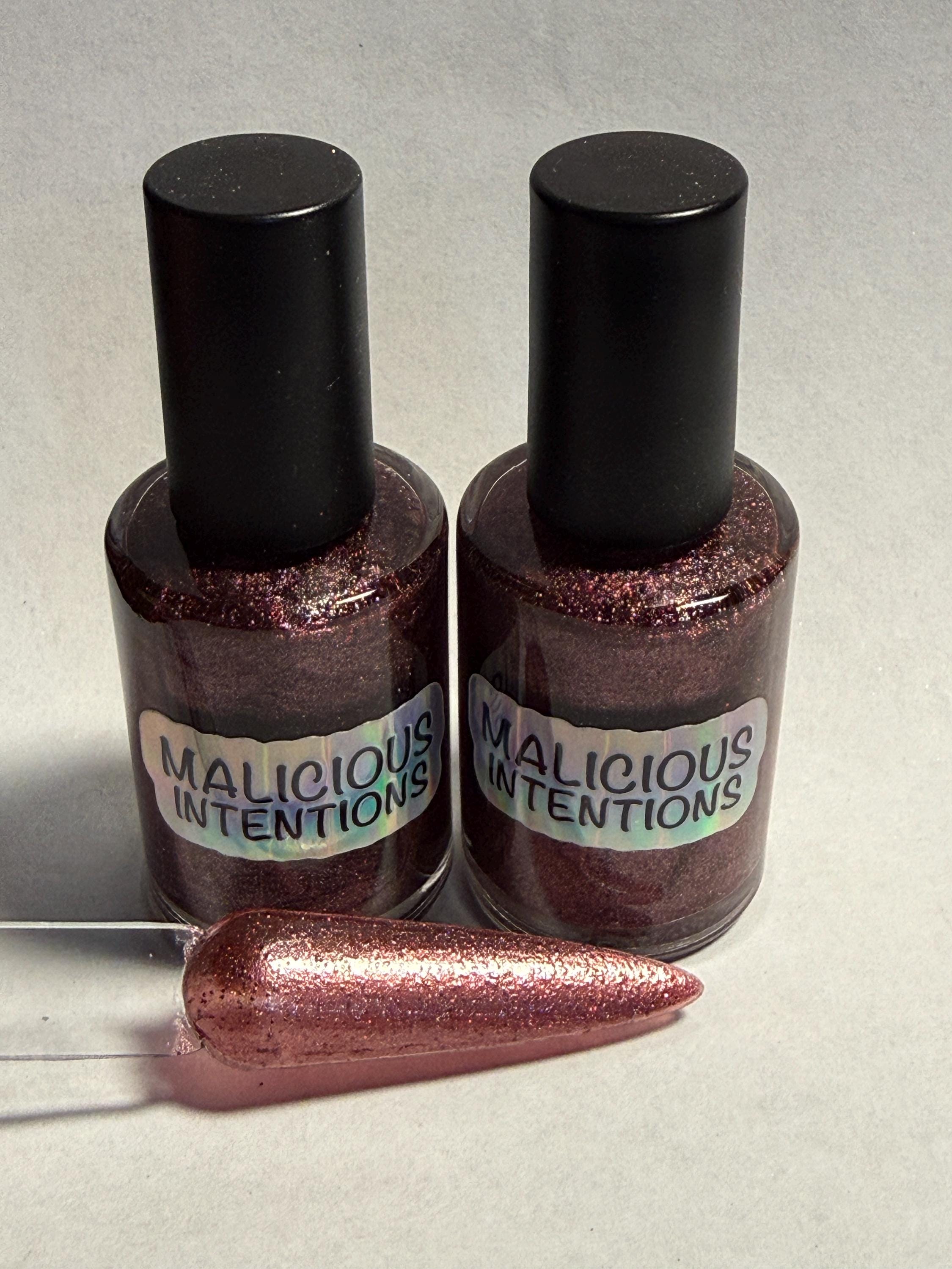 This nail polish comes in either 5 or 15ml bottles and is a fine chocolate brown holographic.