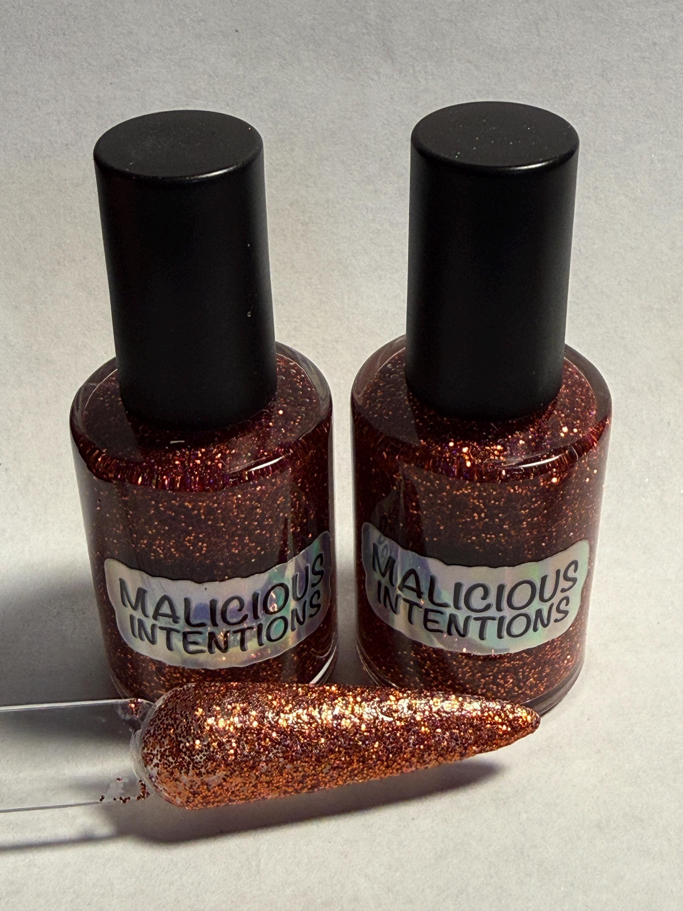 This nail polish comes in either 5 or 15ml bottles and has copper glitter.
