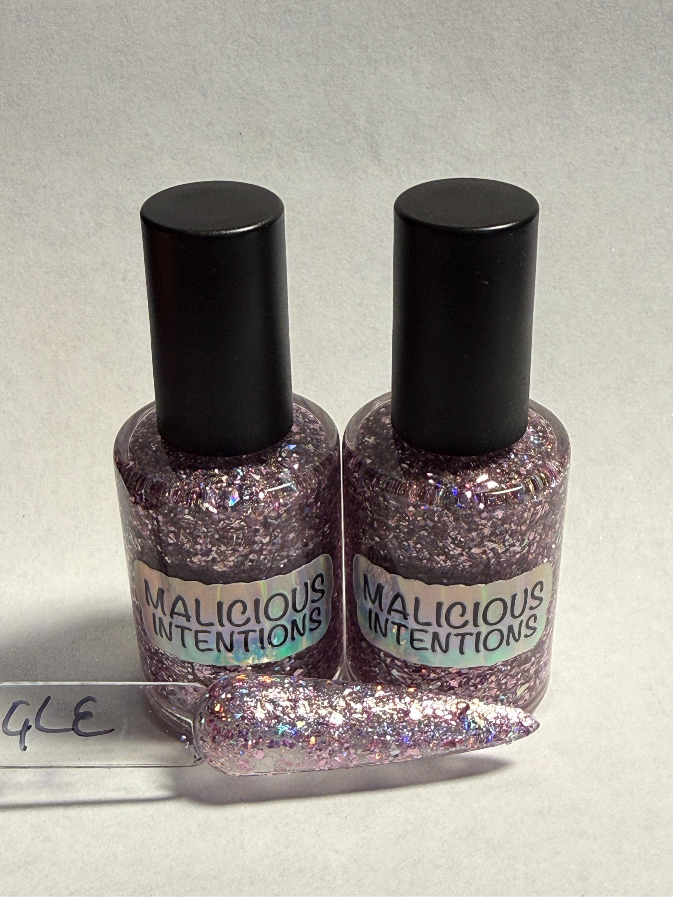 This nail polish comes in either 5 or 15ml bottles and is packed with baby pink and silver holographic flakes.