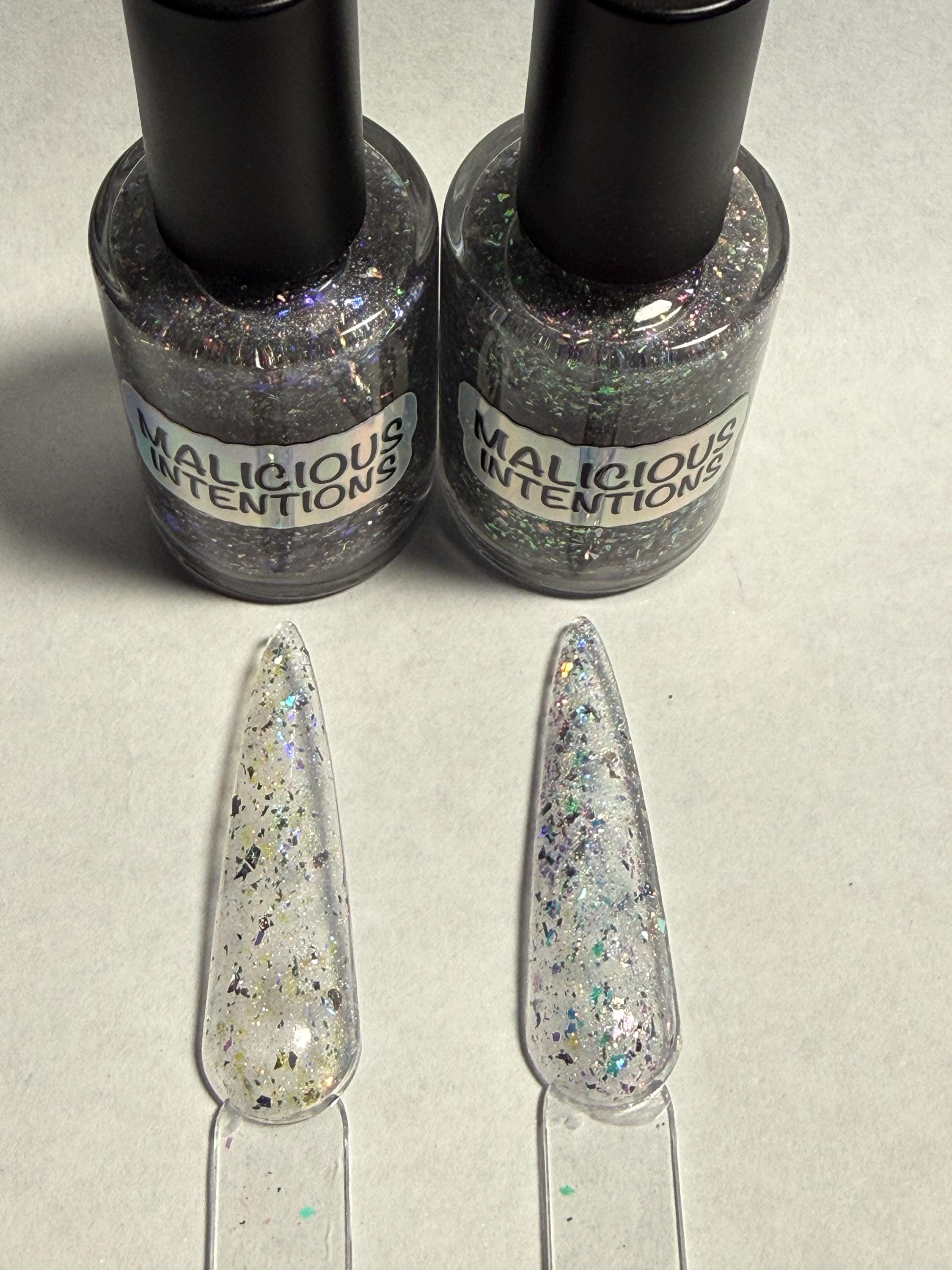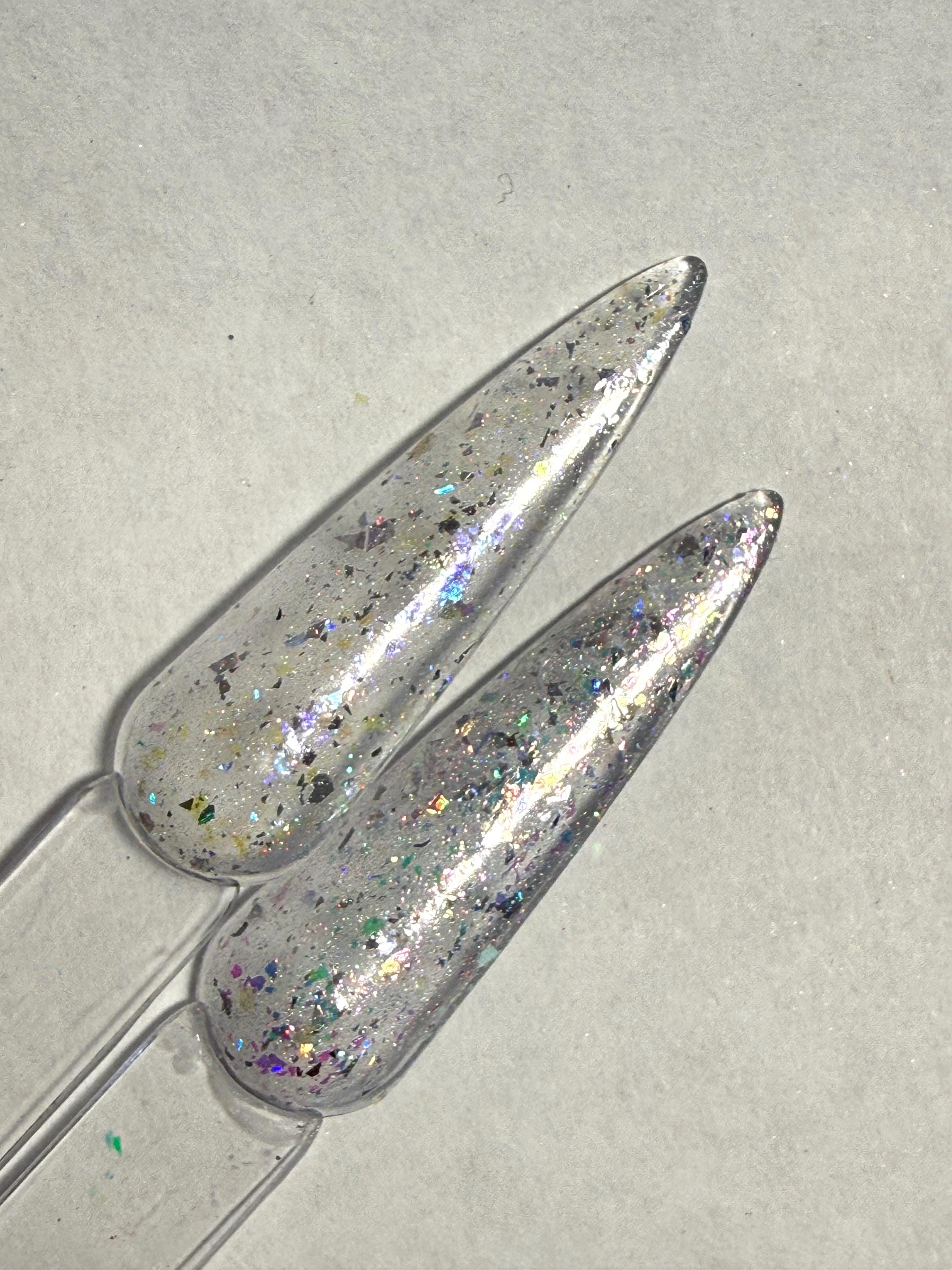 This nail polish comes in either 5 or 15ml bottles and there are two types. Rock Candy is cool in tone while Chips is warm in tone. Both have a shimmery silvery holographic base.