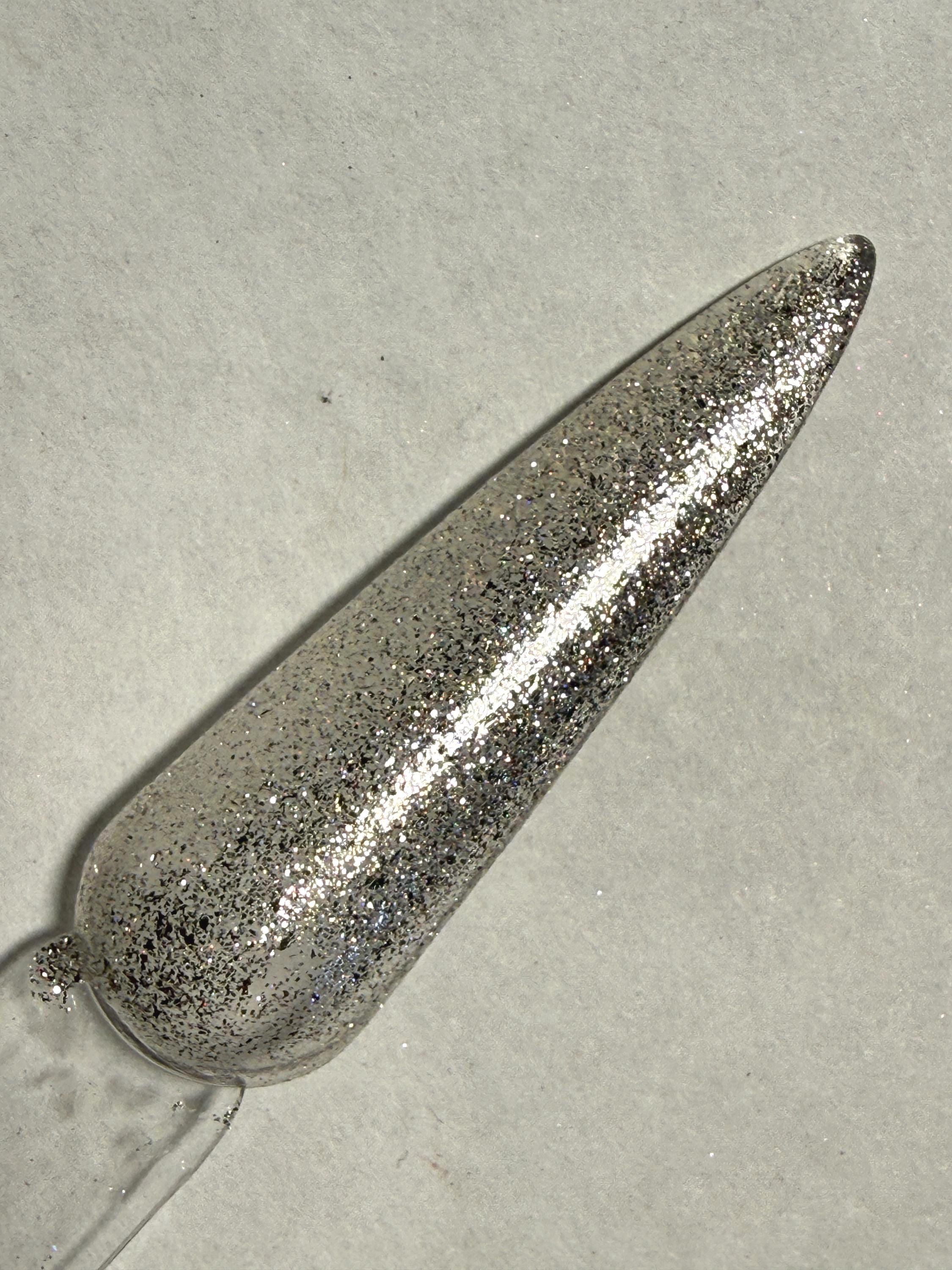 This nail polish comes in either 5 or 15ml bottles and has platinum silver flakes and sparks with a touch of silver holo.