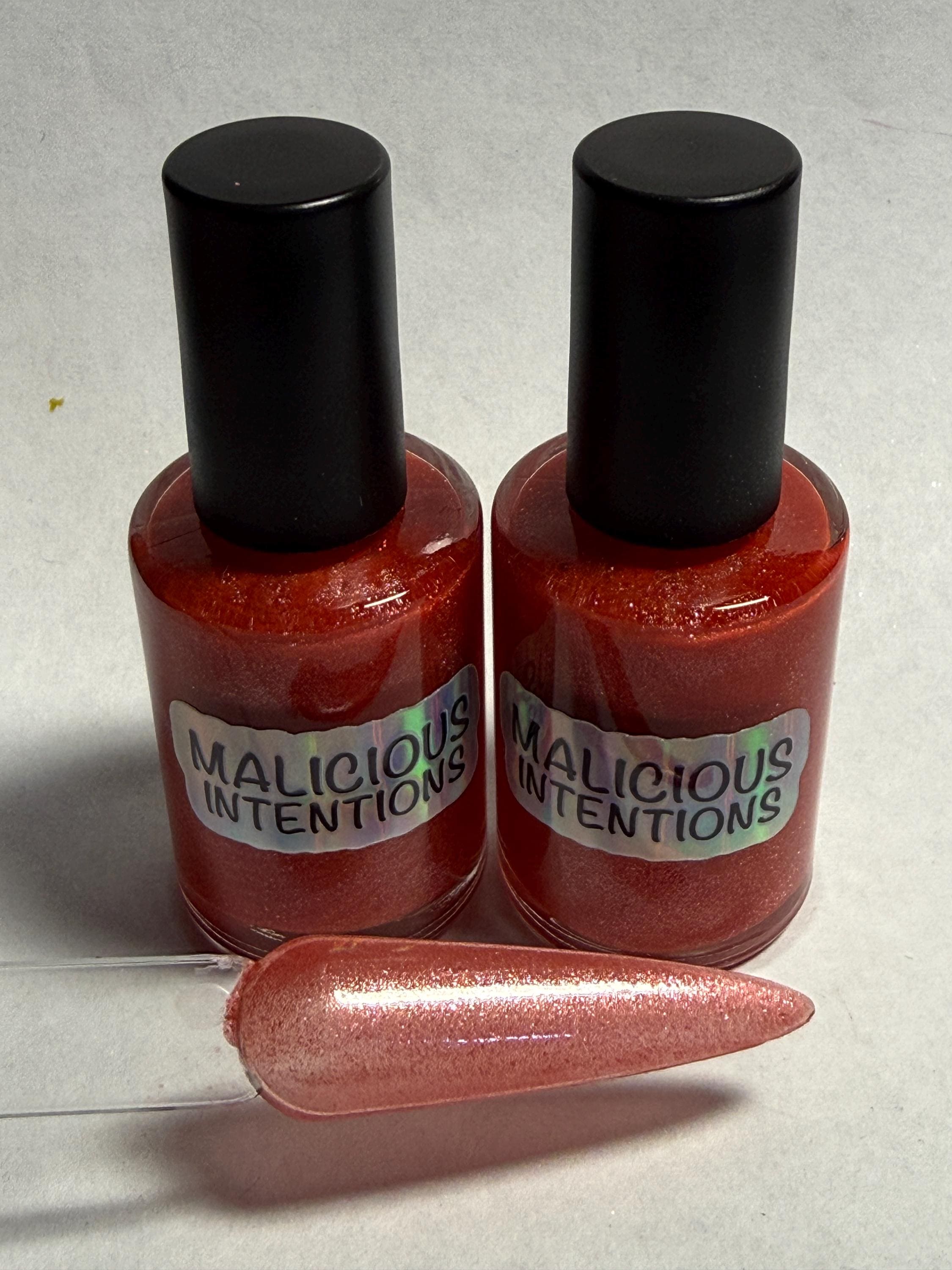 This nail polish comes in either 5 or 15ml bottles and is a warm red that leans slightly pink in some light.
