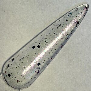 This nail polish comes in either 5 or 15ml bottles and has iridescent flakes of various sizes. A less intense version of Underworld.