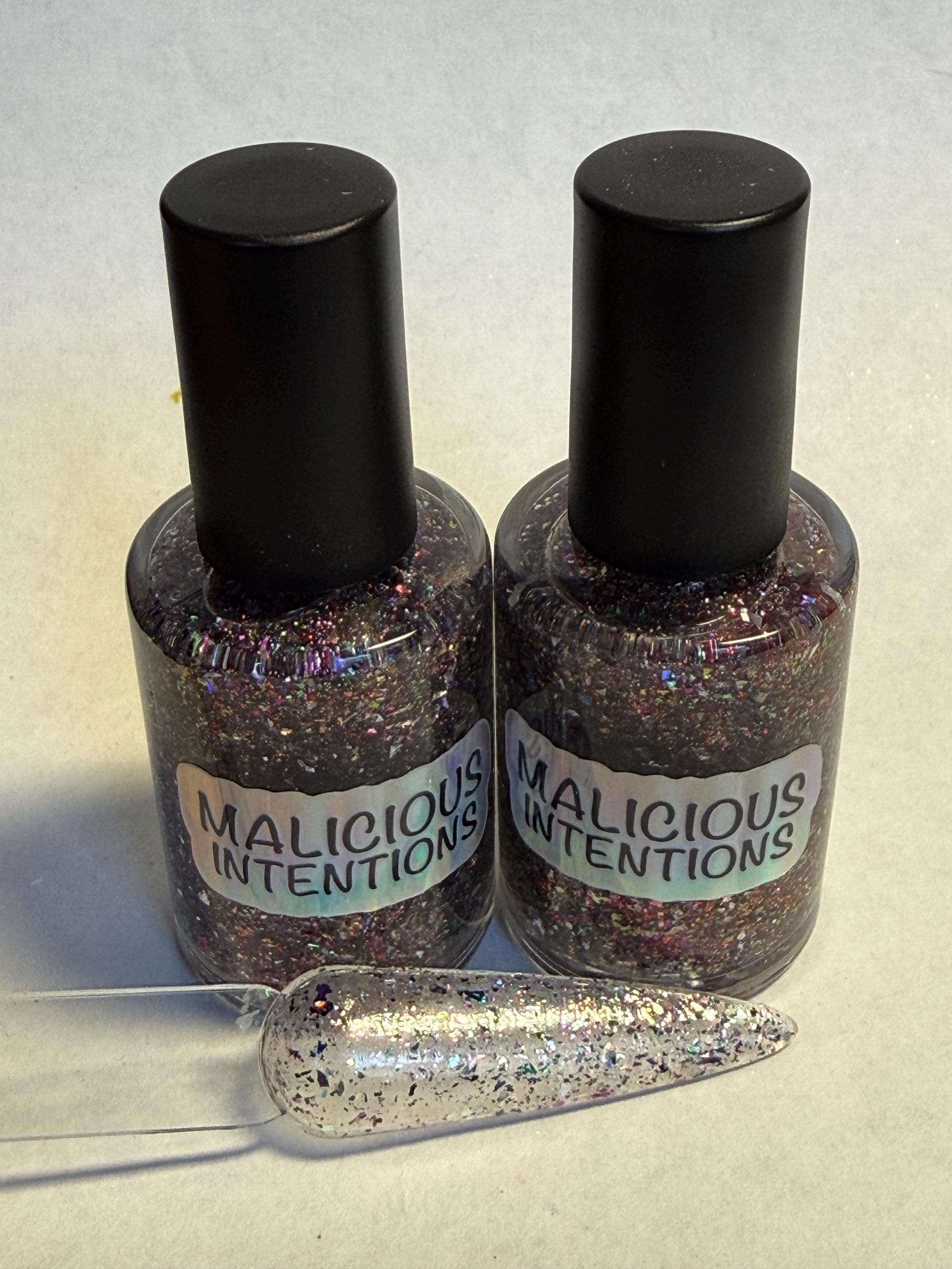 This nail polish comes in either 5 or 15ml bottles and has holographic flakes in purple, green, silver, red, gold, and more!