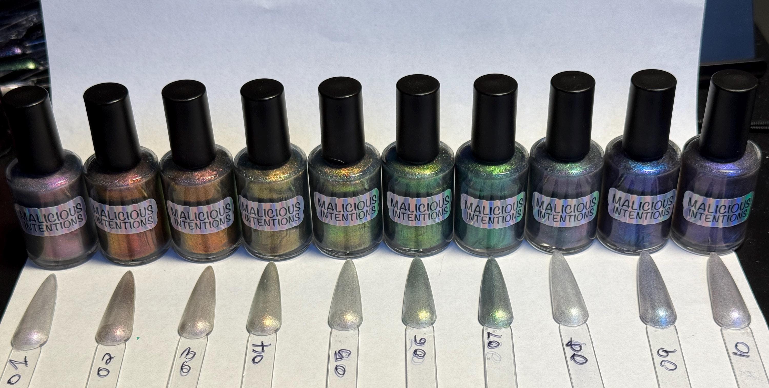This nail polish series comes in either 5 or 15ml bottles and they have chameleon bases with a silver magnetic flash. You will need a magnet to take advantage of the magnetic properties within. It does not come with a magnet but if you'd like me to include one for $1, please check my other listings.