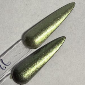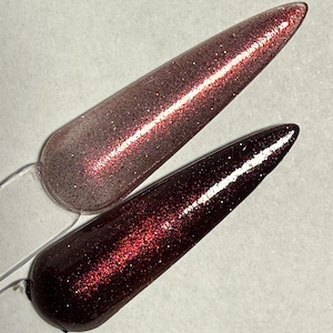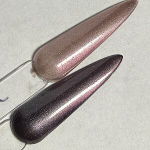 The photos/videos is one coat over a black base and magnetized using the bead method, and the other is two coats that have been velvetized.
