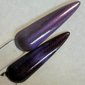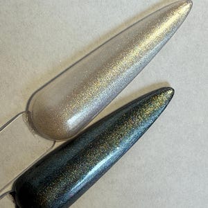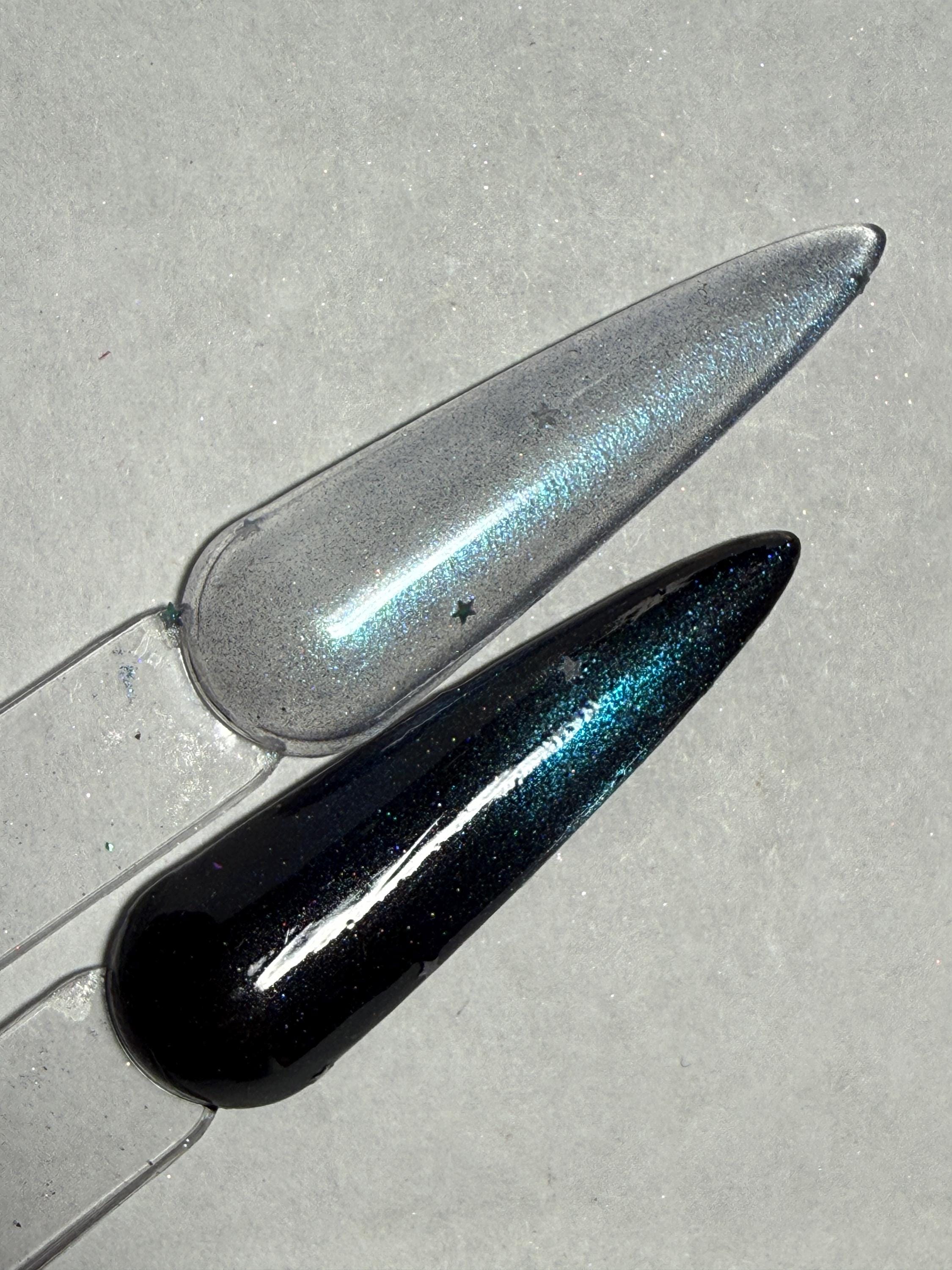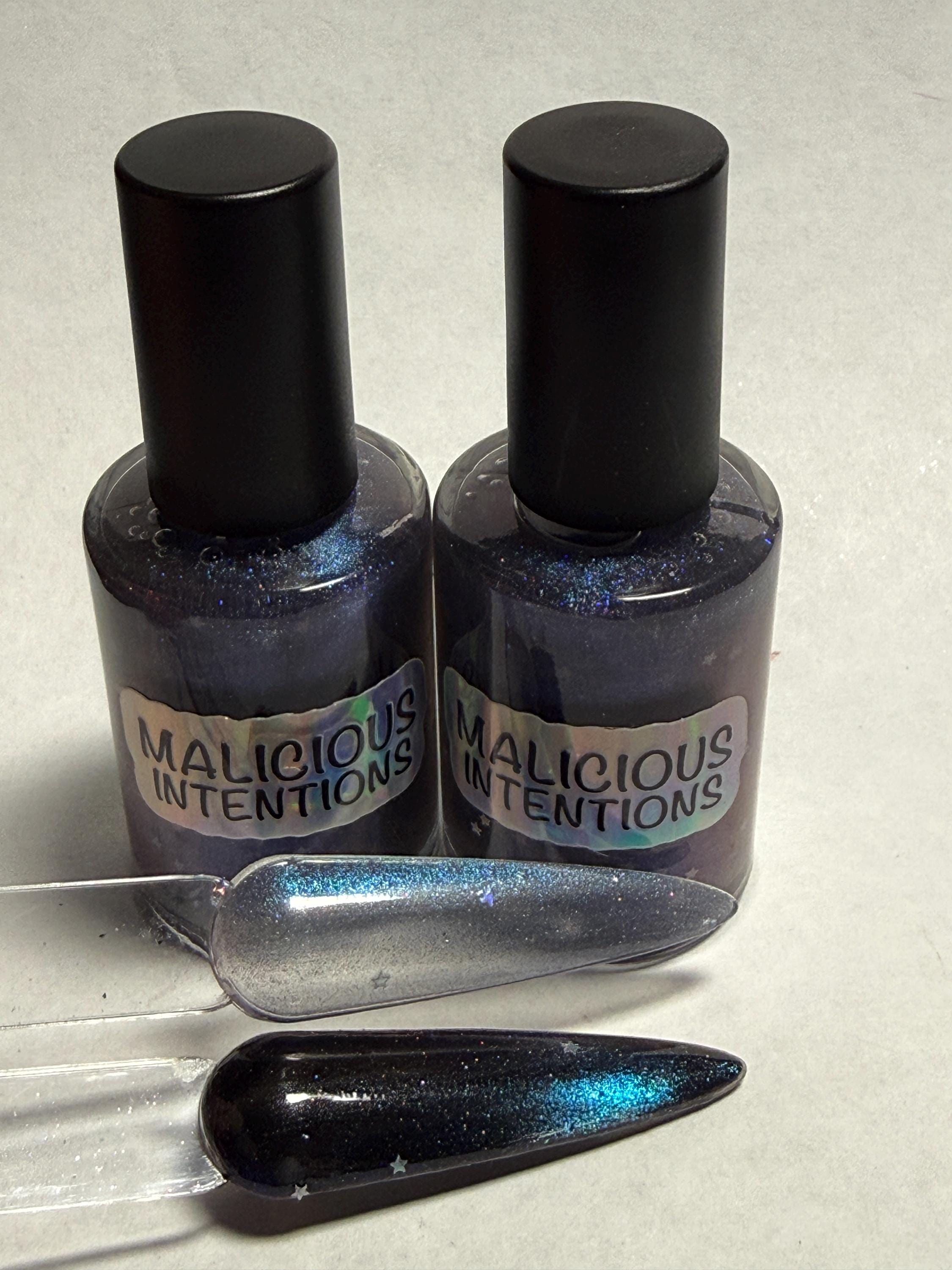 This nail polish comes in either 5 or 15ml bottles and is a blue/green chameleon magnetic with a touch of holo and 1mm silver holo stars. The Northern Lights on your nails! You will need a magnet to take advantage of the magnetic properties within. It does not come with a magnet but if you'd like me to include one for $1, please check my other listings.