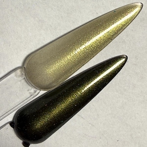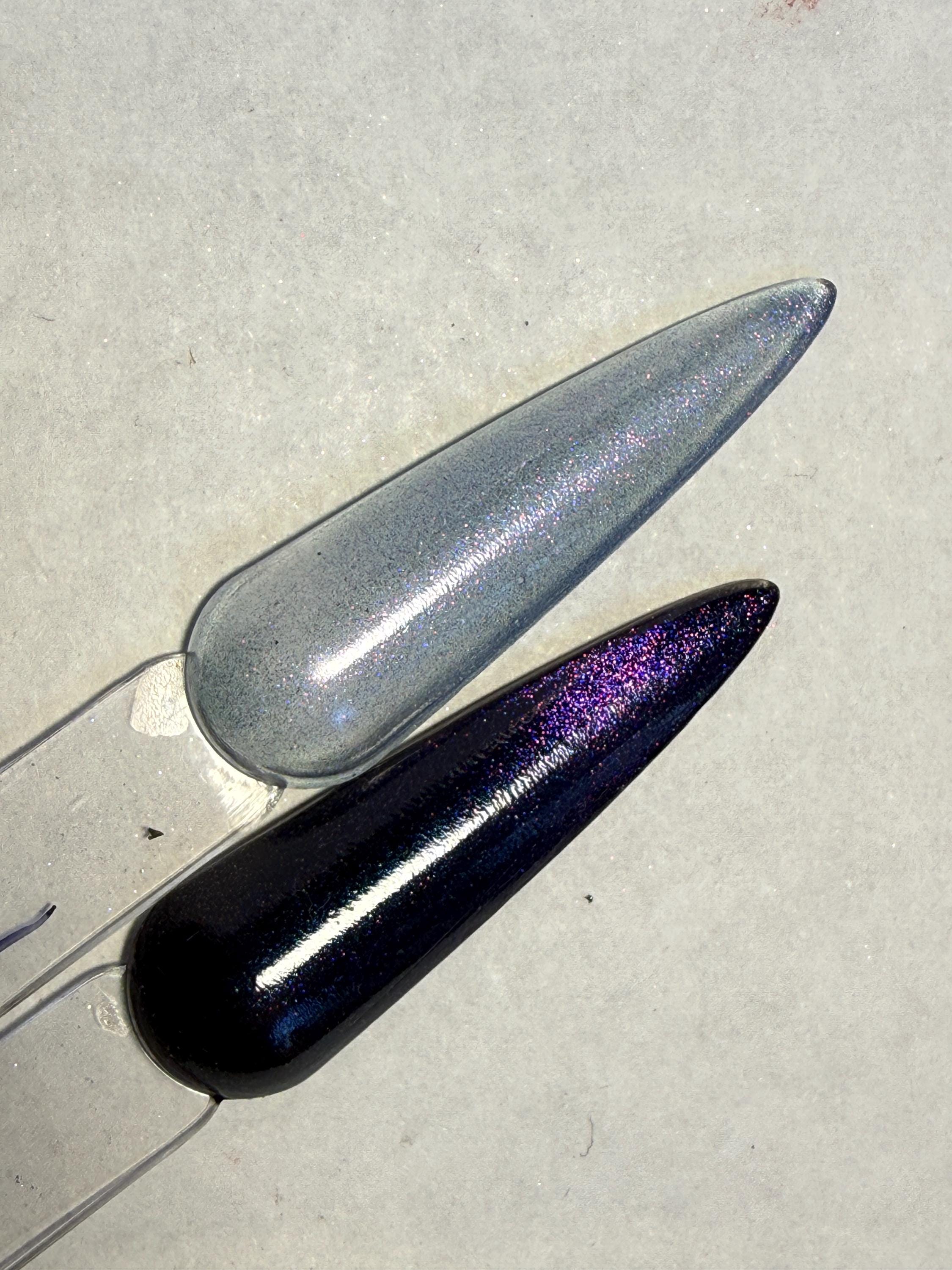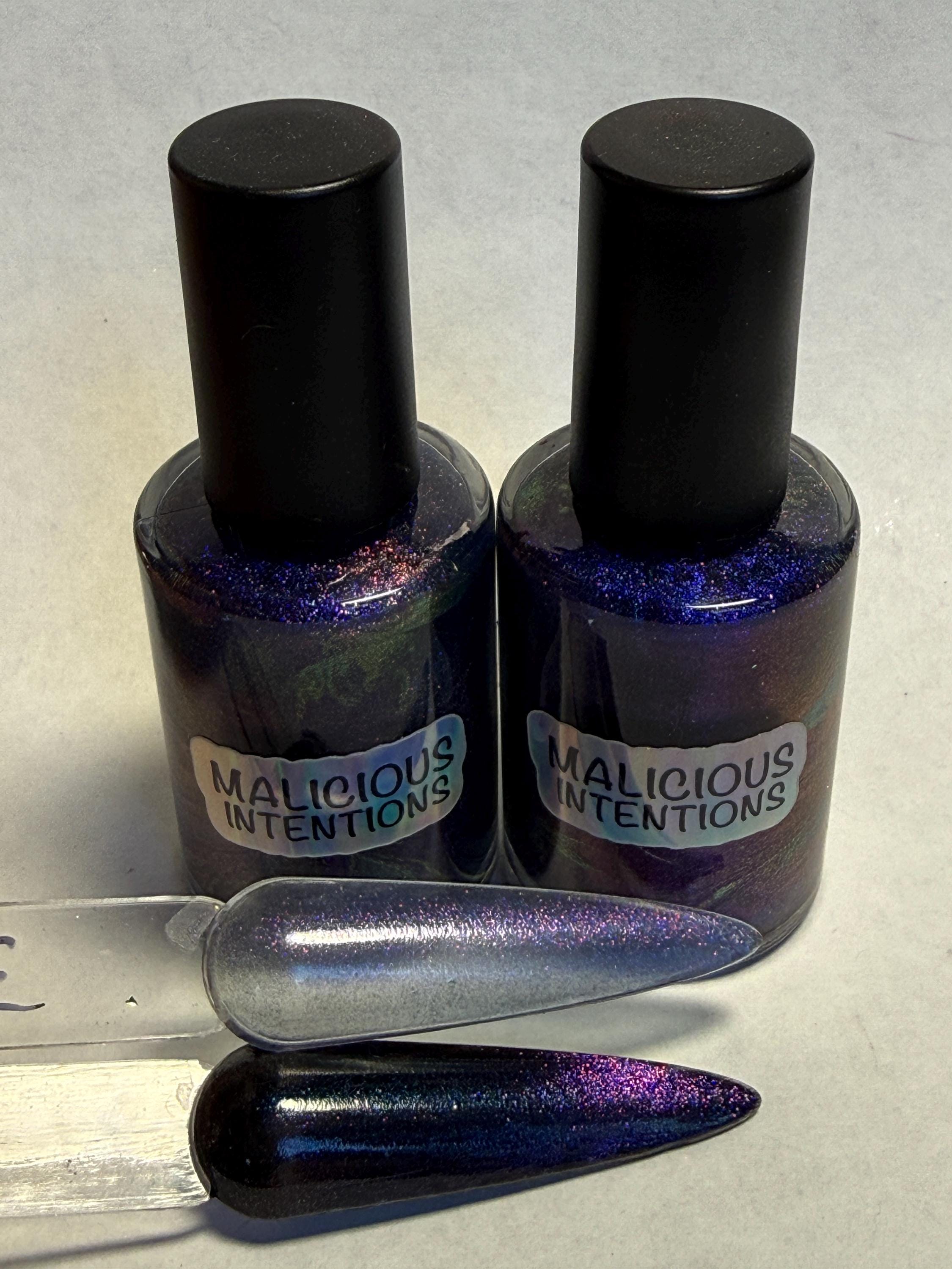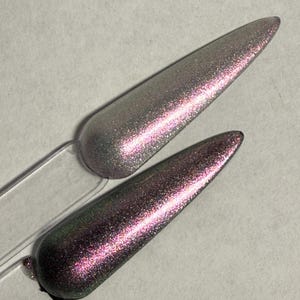 This nail polish comes in either 5 or 15ml bottles and is a purple chameleon magnetic. You will need a magnet to take advantage of the magnetic properties within. It does not come with a magnet but if you'd like me to include one for $1, please check my other listings.