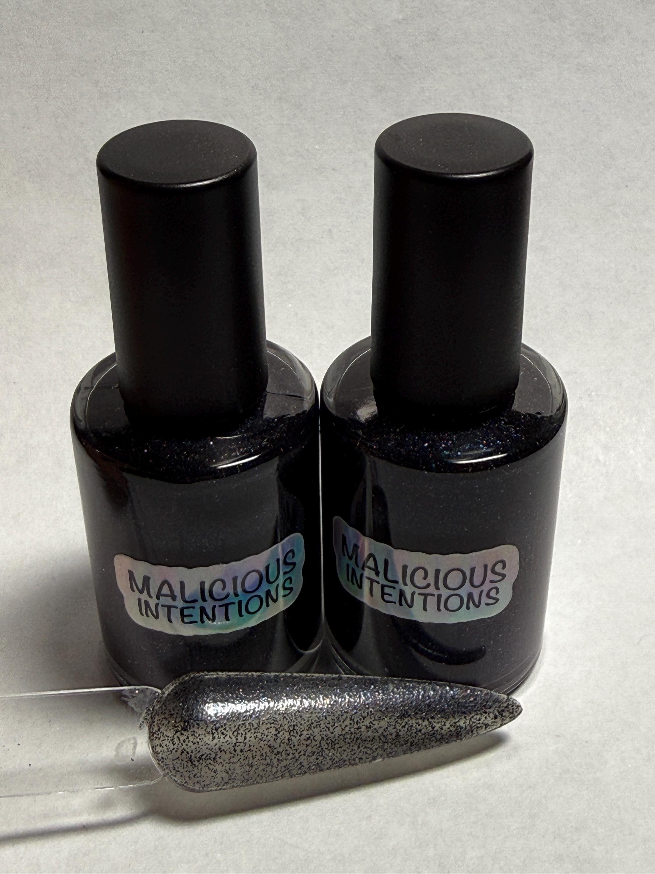 This nail polish comes in either 5 or 15ml bottles and is a semi-sheer black with a slight hint of ultra fine black holo.