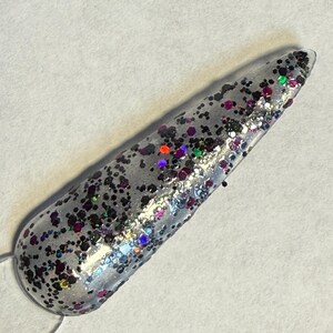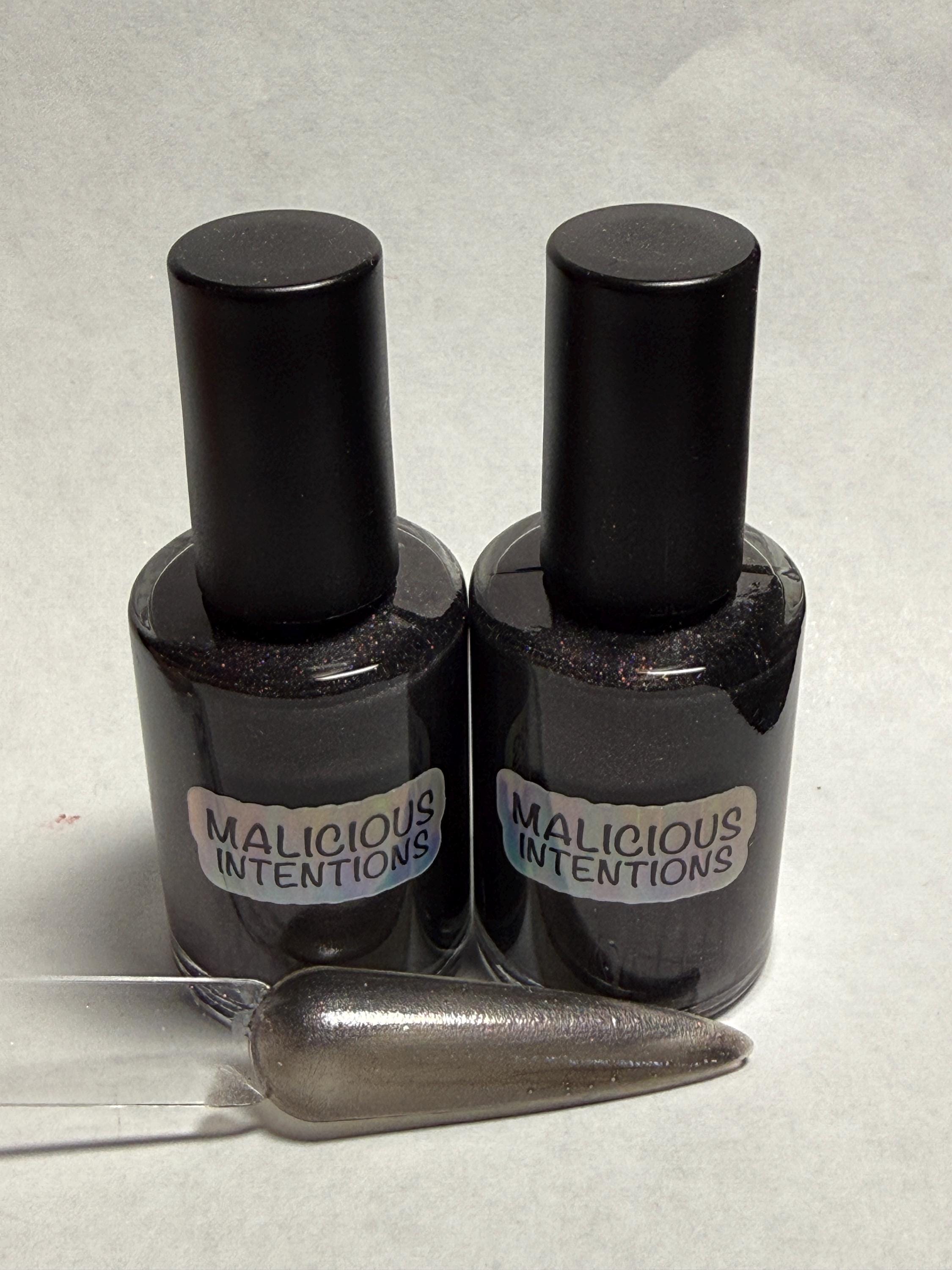 This nail polish comes in either 5 or 15ml bottles and is a semi-sheer black with a brown undertone.