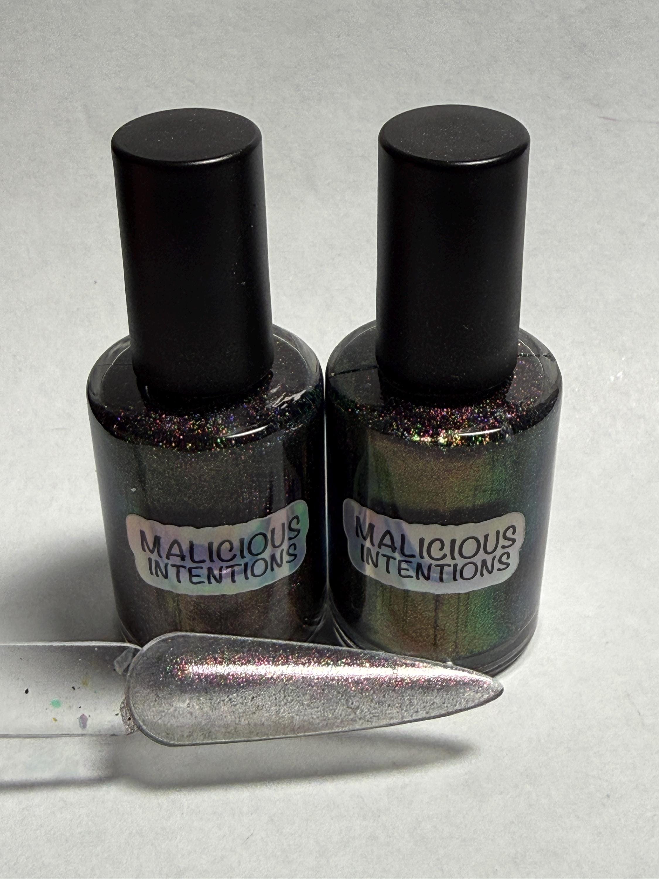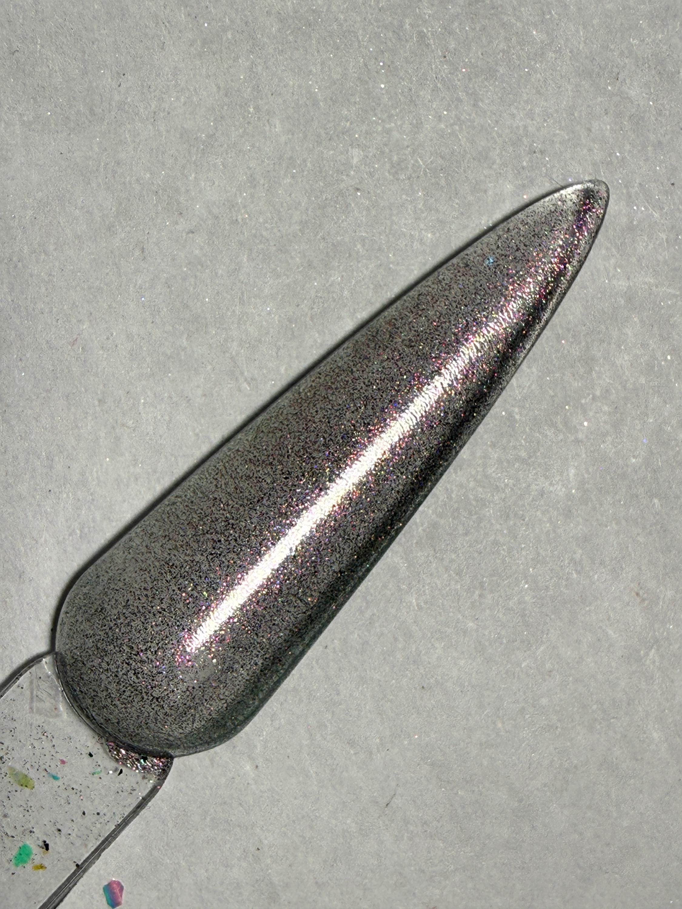This nail polish comes in either 5 or 15ml bottles and is tough to describe. Its got a mix of chameleon pigments which gives it a rainbow look.