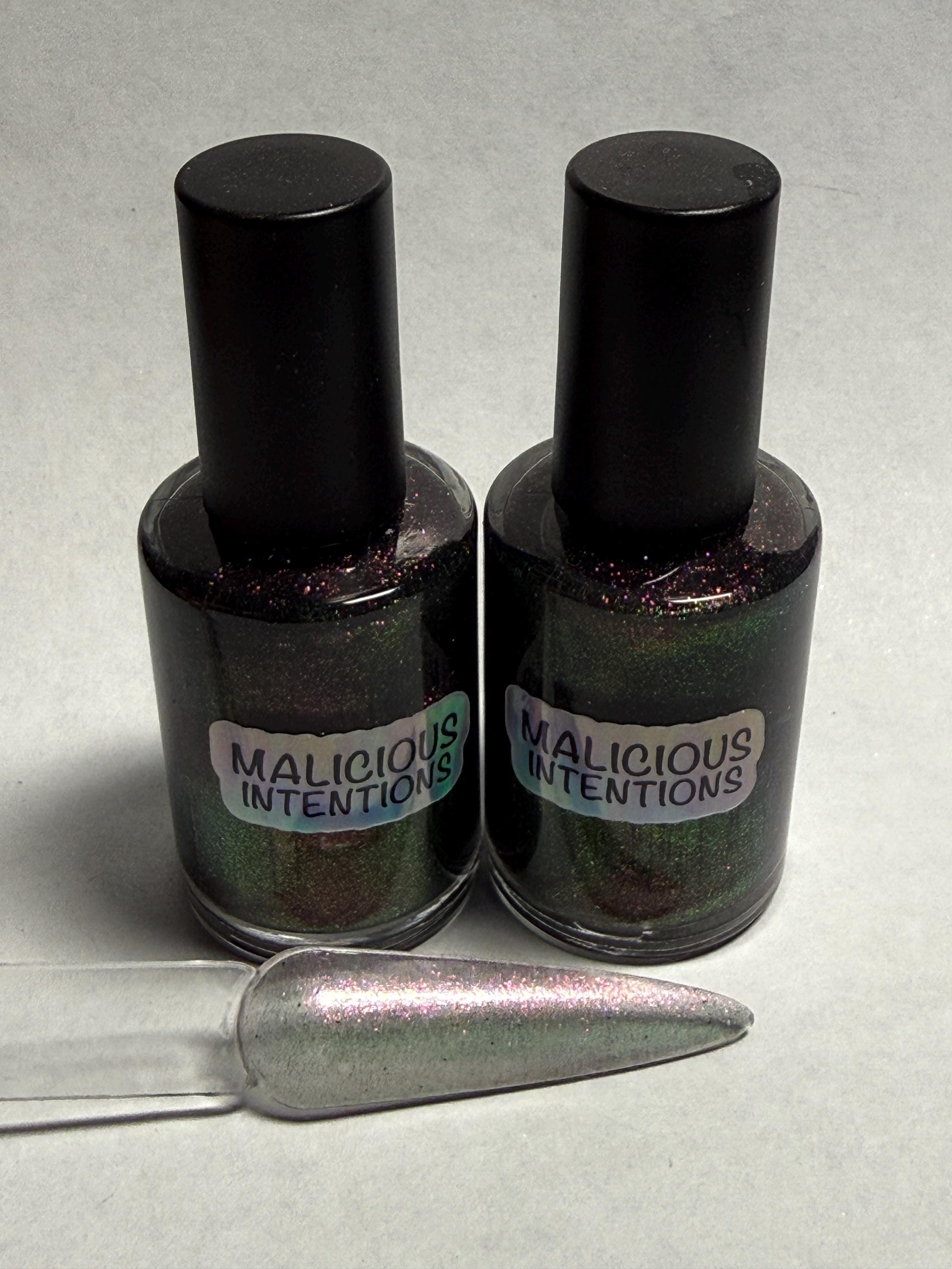 This nail polish comes in either 5 or 15ml bottles and is a rainbow chameleon but flashes pink.