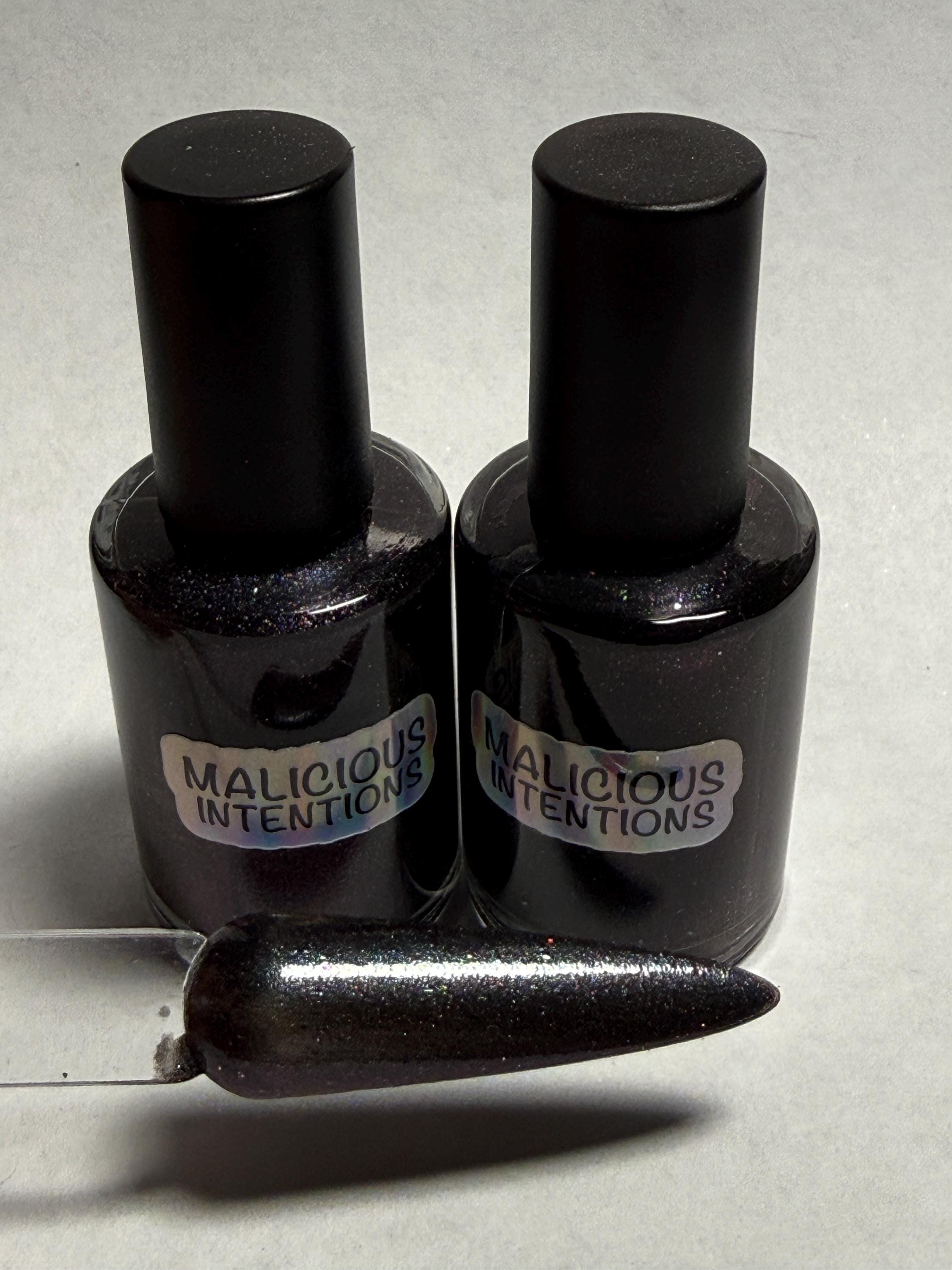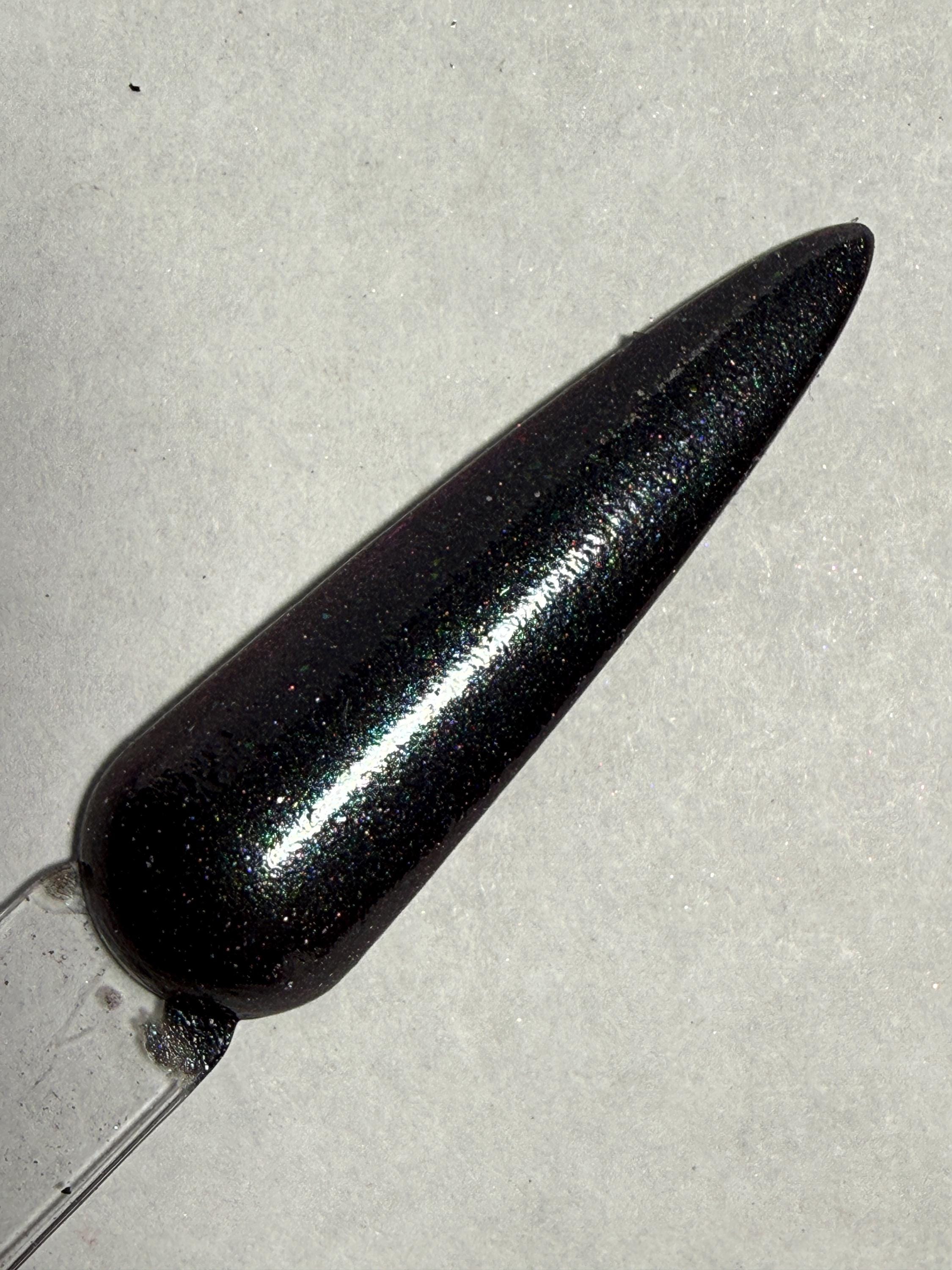 This nail polish comes in either 5 or 15ml bottles and is a charcoal gray with some chameleon pigment mixed in which gives it a distinctive color that's hard to describe.