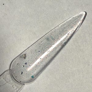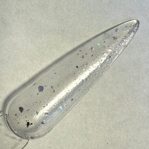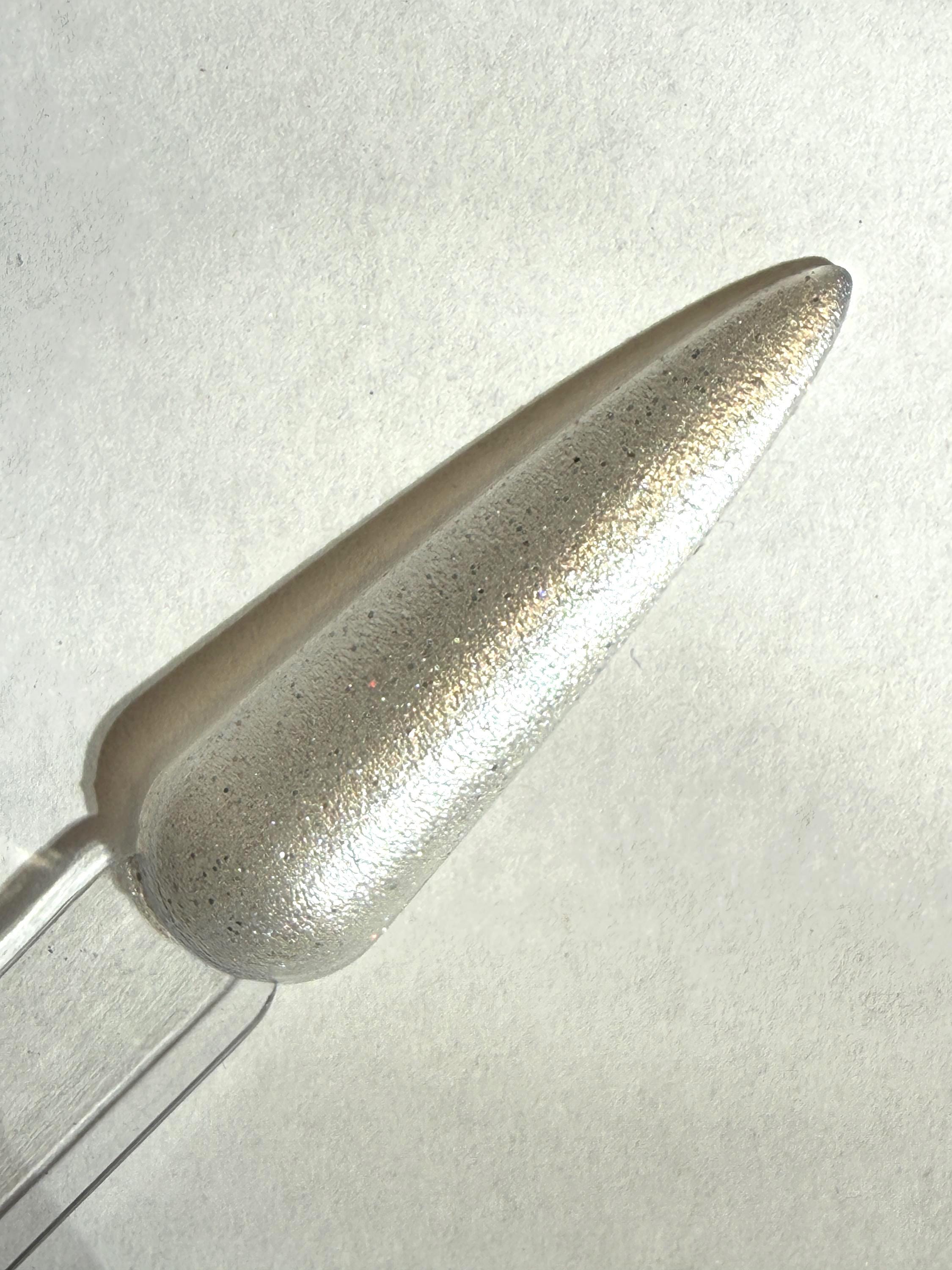 This nail polish comes in either 5 or 15ml bottles and is a silver shimmer with a bit of ultra fine silver holo mixed in.