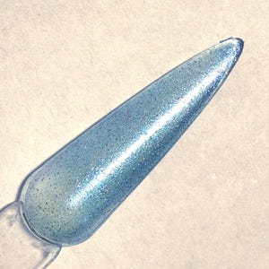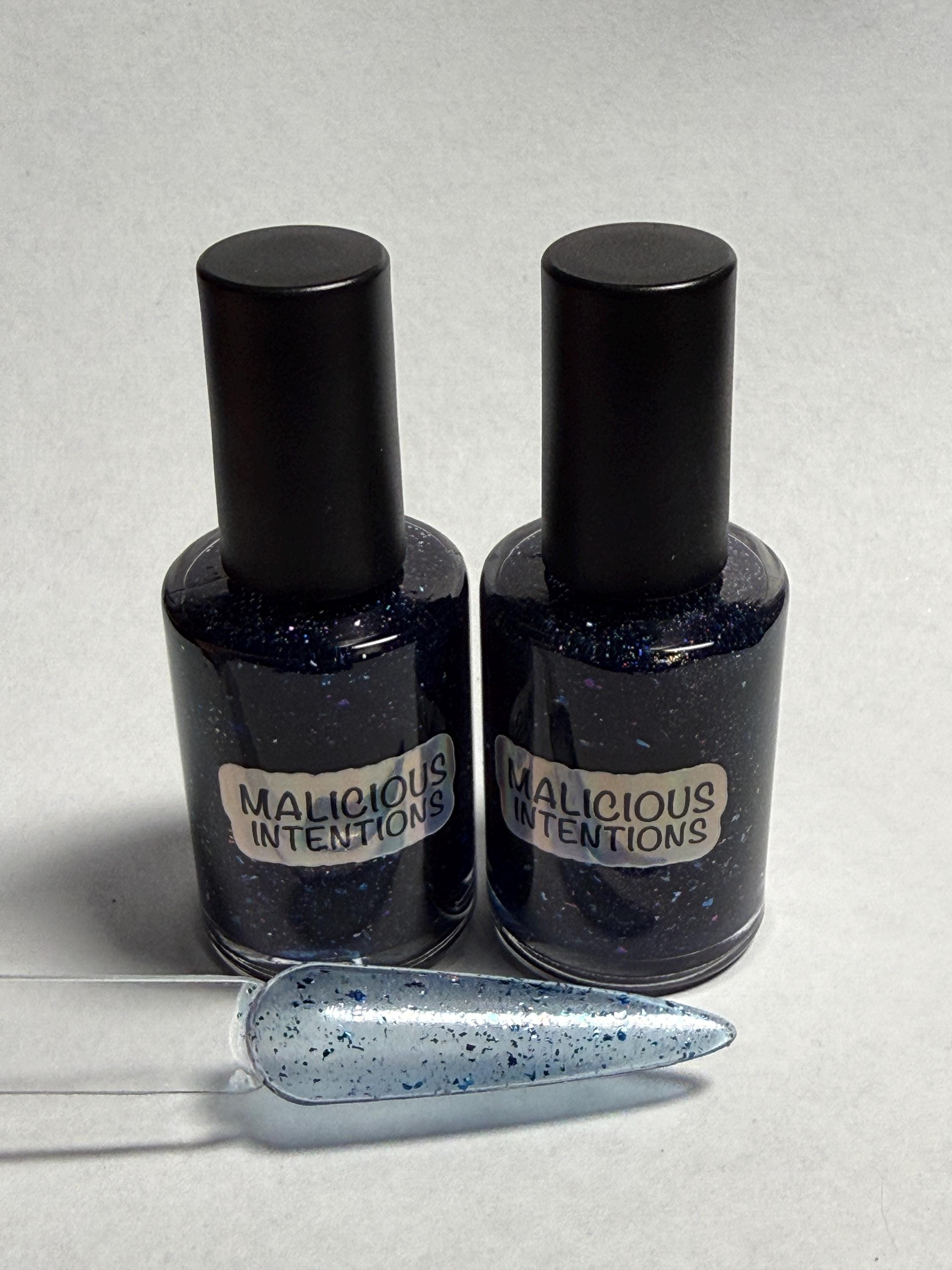 This polish is a blue jelly base with blue holographic and chameleon flakes.
