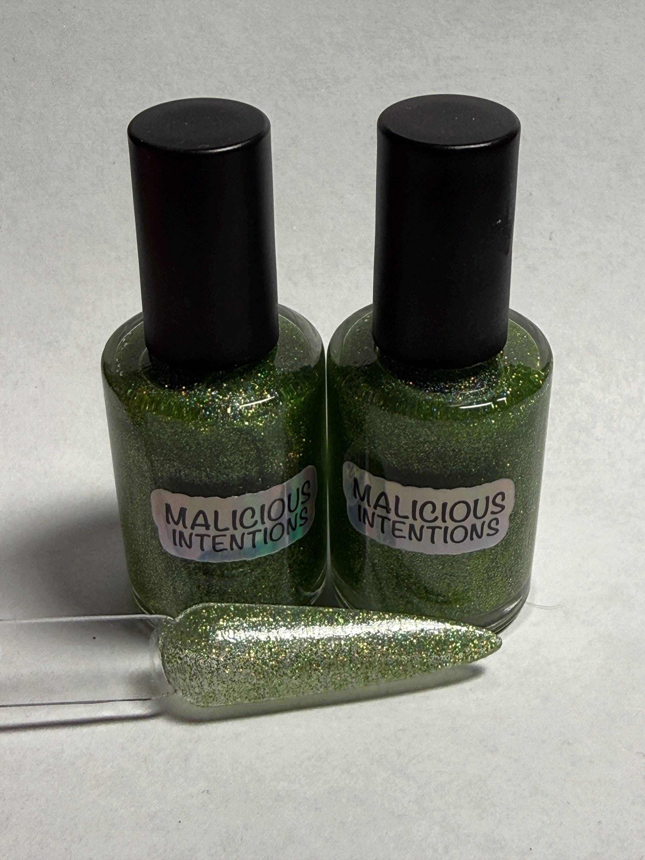 This nail polish comes in either 5 or 15ml bottles and has fine lime green holographic glitter in a clear base.
